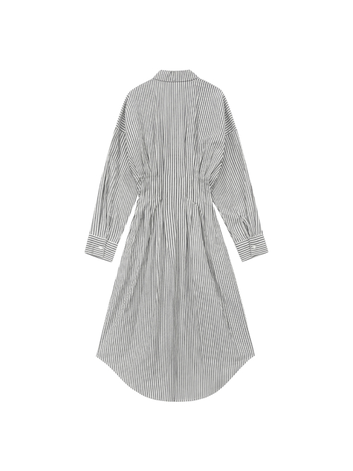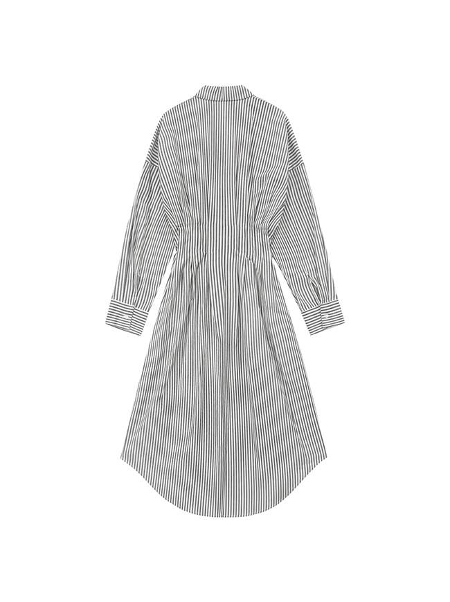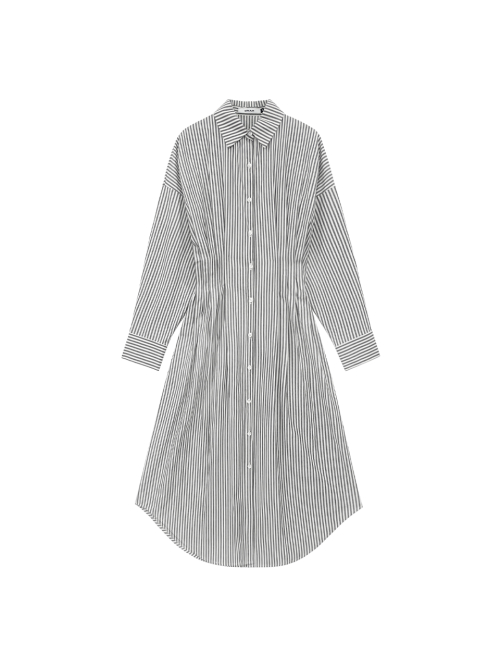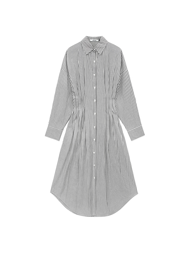 사이드 플리츠 스트라이프 셔츠 드레스