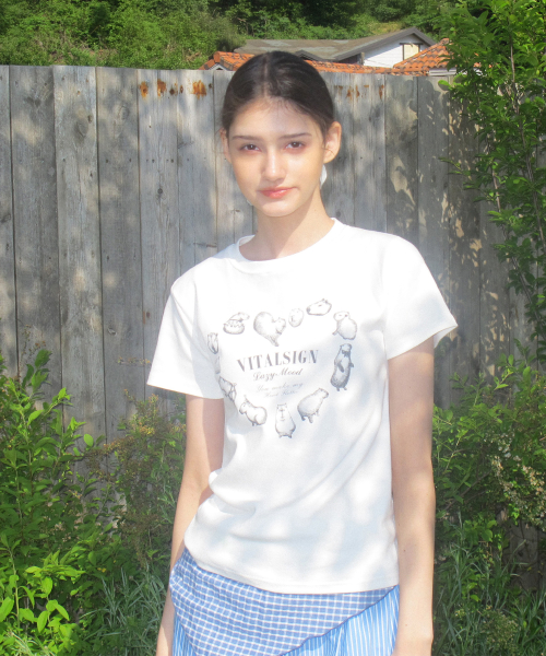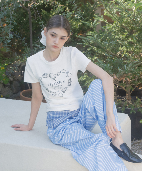 [LINE] Shoulder Strap Print T-shirt