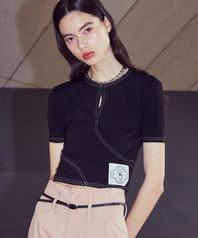 [LINE] Slit Stitch Crop T-shirt