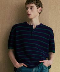 헨리넥 스트라이프 반팔 니트 [네이비]