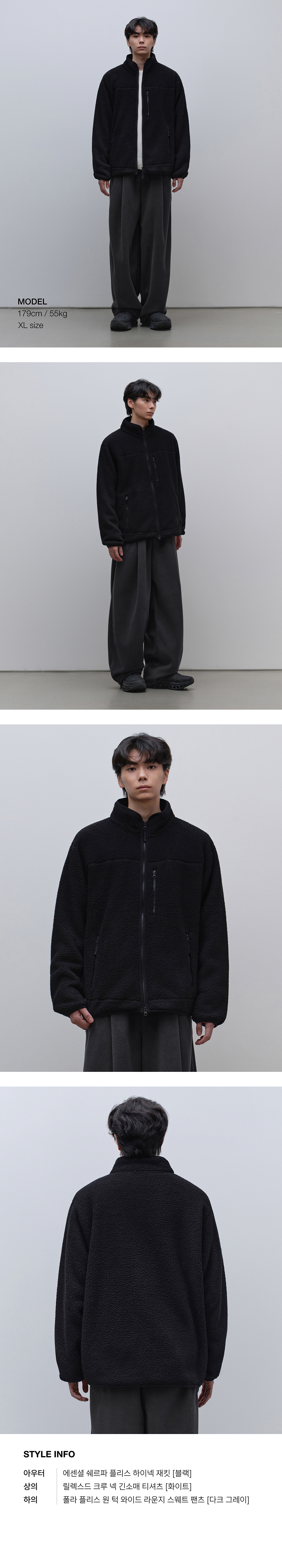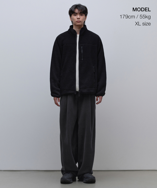 오버사이즈 폴라 플리스 하이넥 재킷 [블랙]