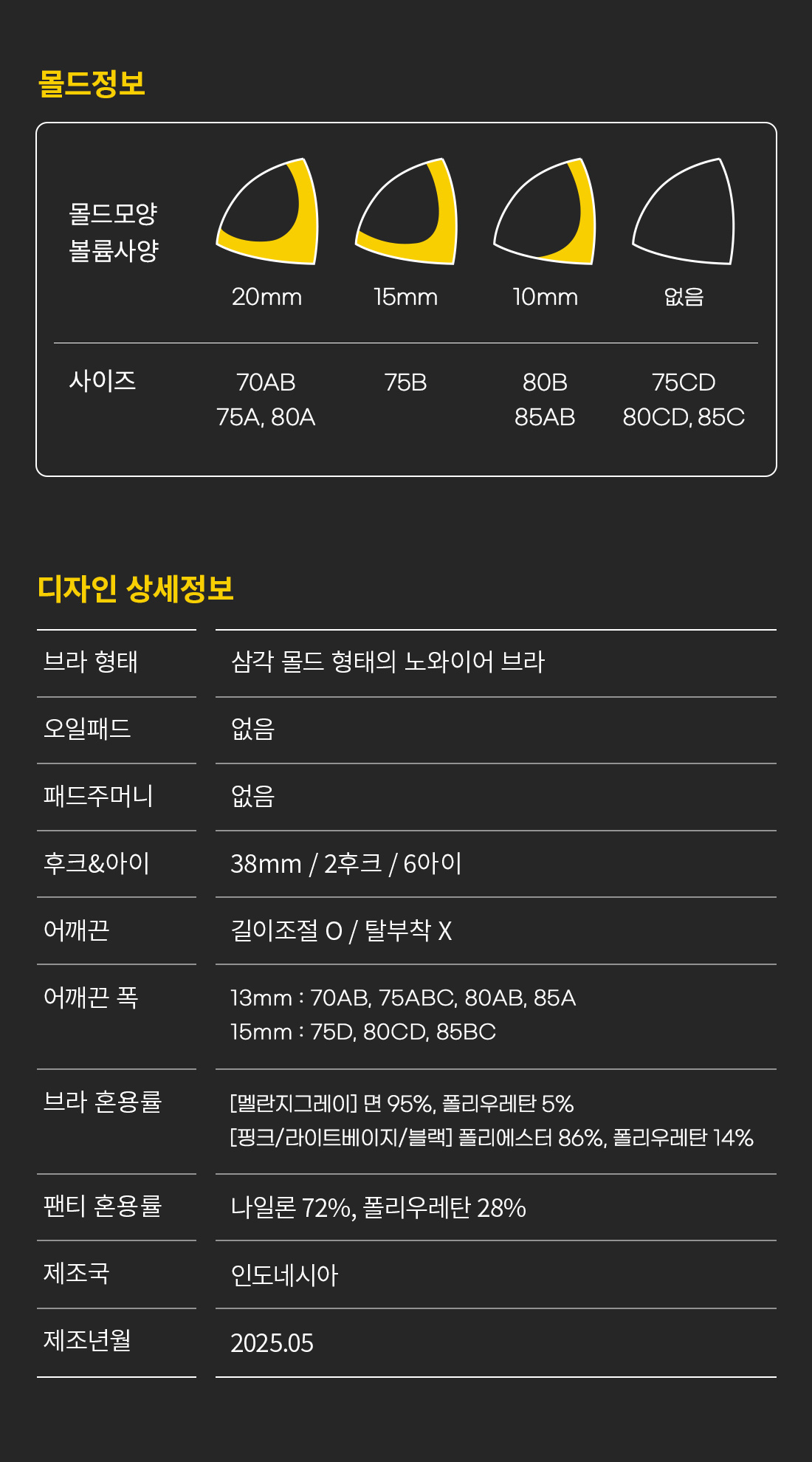 [최지수 PICK] 일체형 볼륨몰드 노와이어 브라팬티 세트