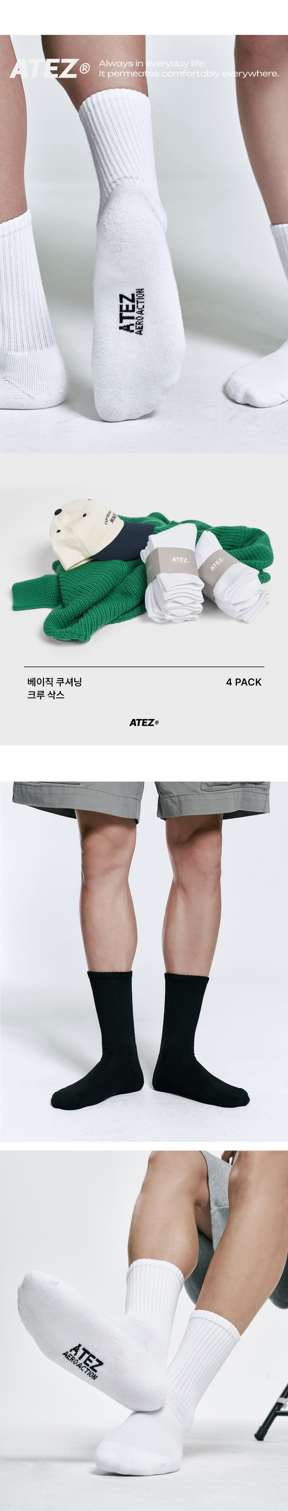 [4팩] 베이직 쿠셔닝 크루 삭스 [2COLOR]