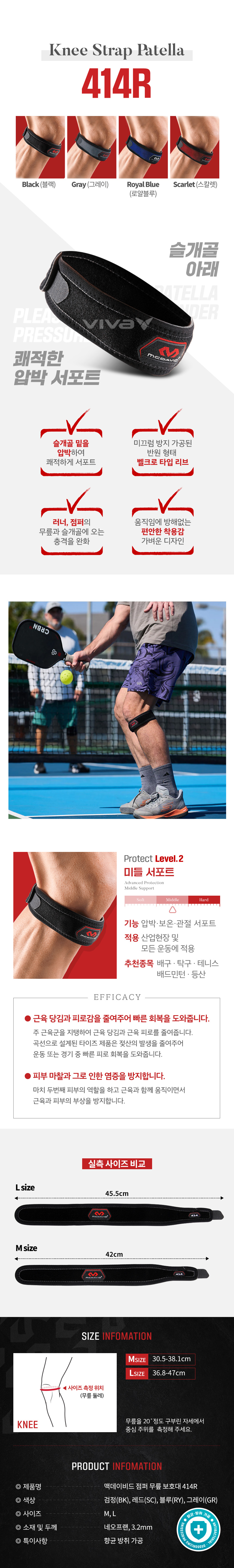 무릎 보호대 슬개골 스트랩 Knee Strap 414R 블랙 (2pack)