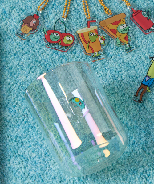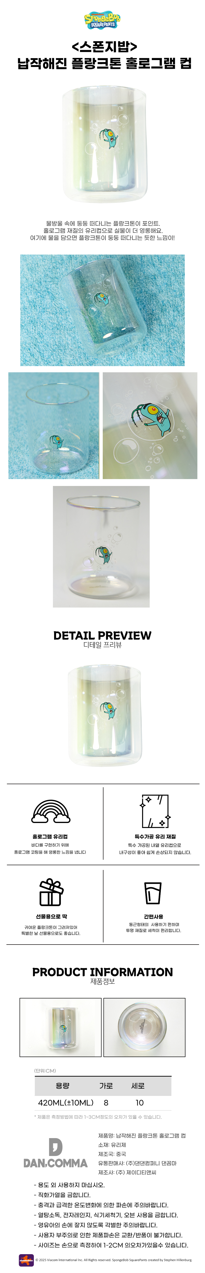 스폰지밥 납작해진 플랑크톤 홀로그램 컵