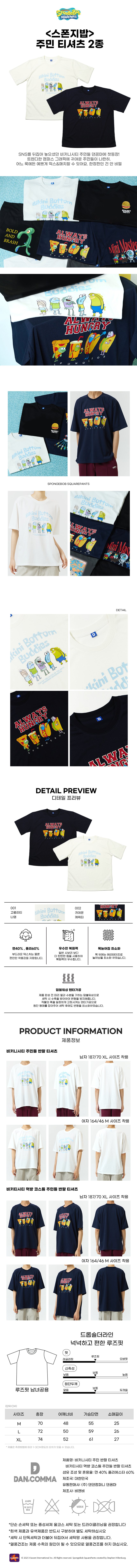 스폰지밥 비키니시티 주민들 그래픽 반팔 티셔츠(한정판)