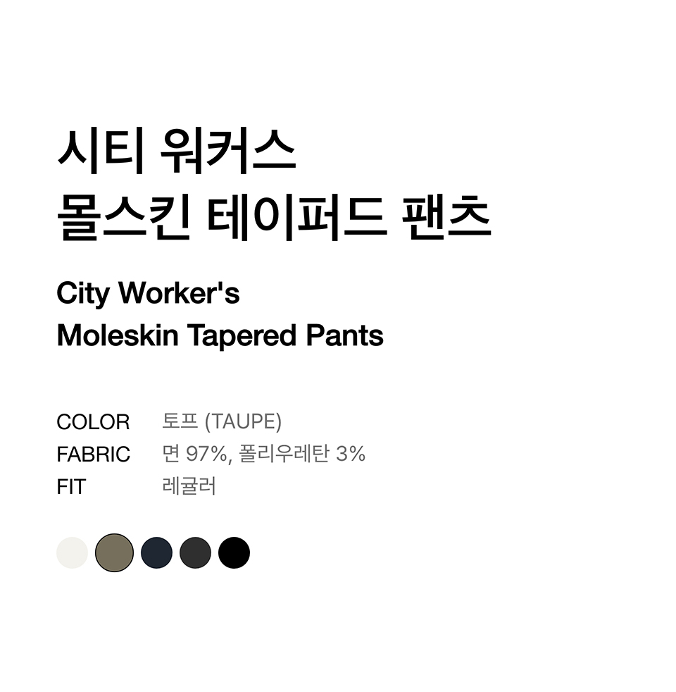 시티 워커스 몰스킨 테이퍼드 팬츠 [토프]