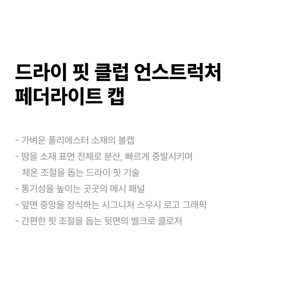 드라이 핏 클럽 언스트럭처 페더라이트 캡 - 블랙:화이트 / FB5682-010