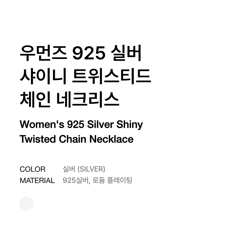우먼즈 925 실버 샤이니 트위스티드 체인 네크리스 [실버]