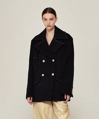WIDE COLLAR DOUBLE BREASTED PEA COAT (D/NAVY)