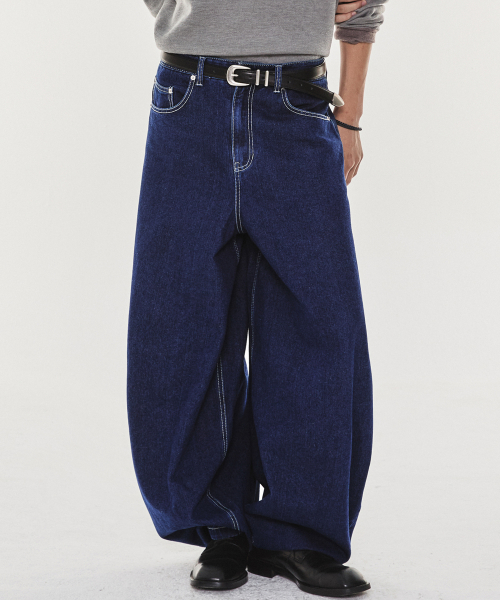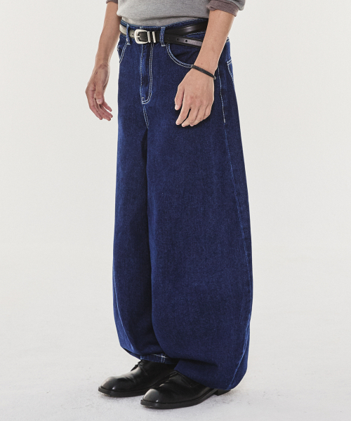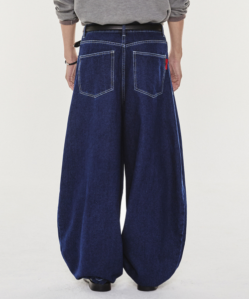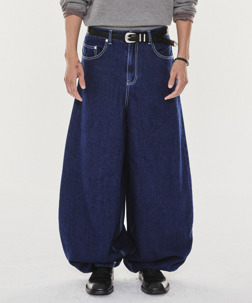 블루 워시드 벌룬 슈퍼 와이드 데님 팬츠