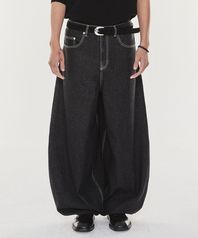 Light Cotton Balloon fit denim pants (Black)