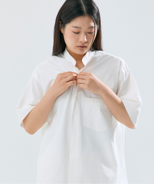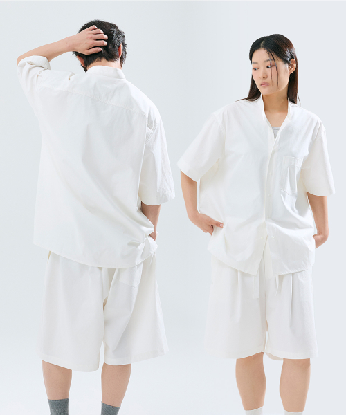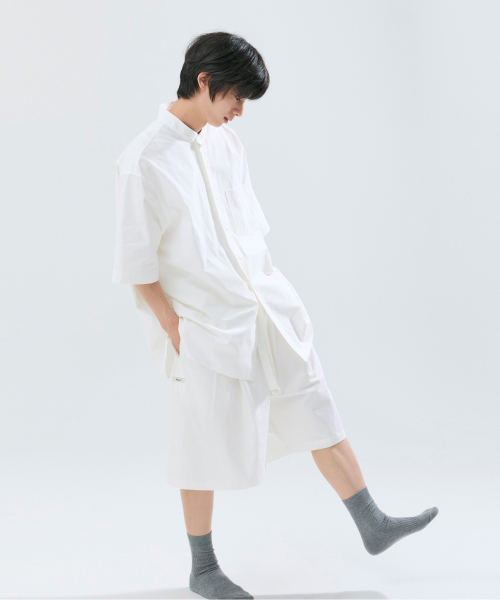 (uni) Lazed over short sleeve cotton white