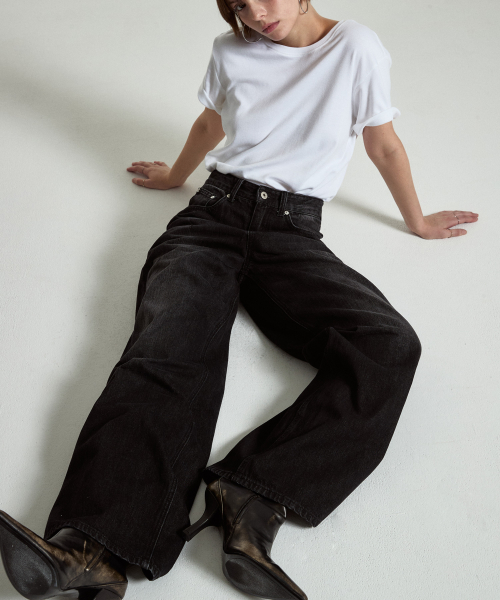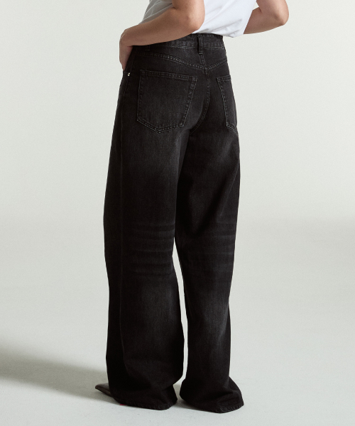 Stack wide denim pants (Black)