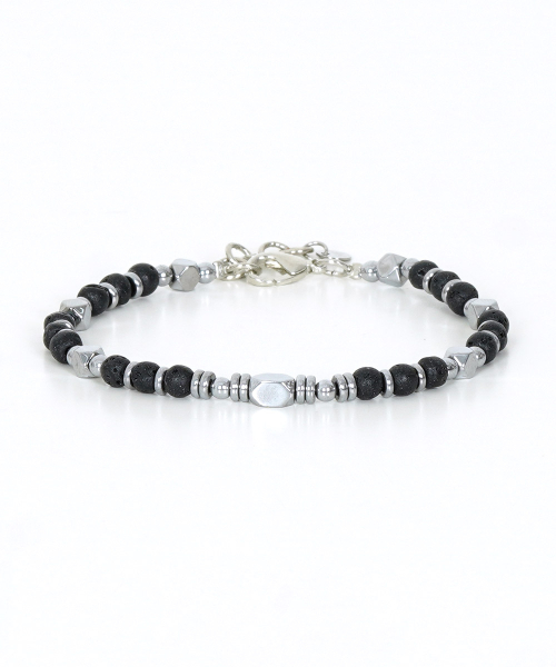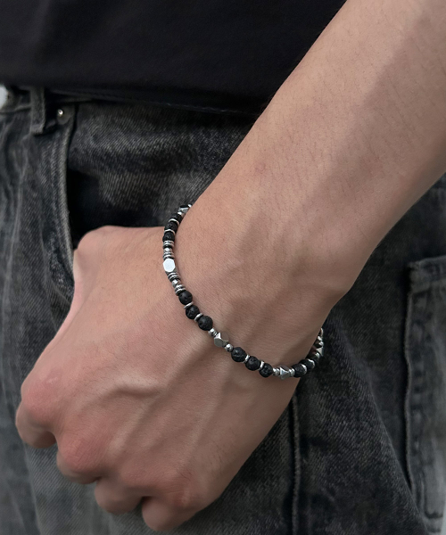 남성 패션 화산석 흑요석 4mm 스틸 원석 팔찌 MFJBM34