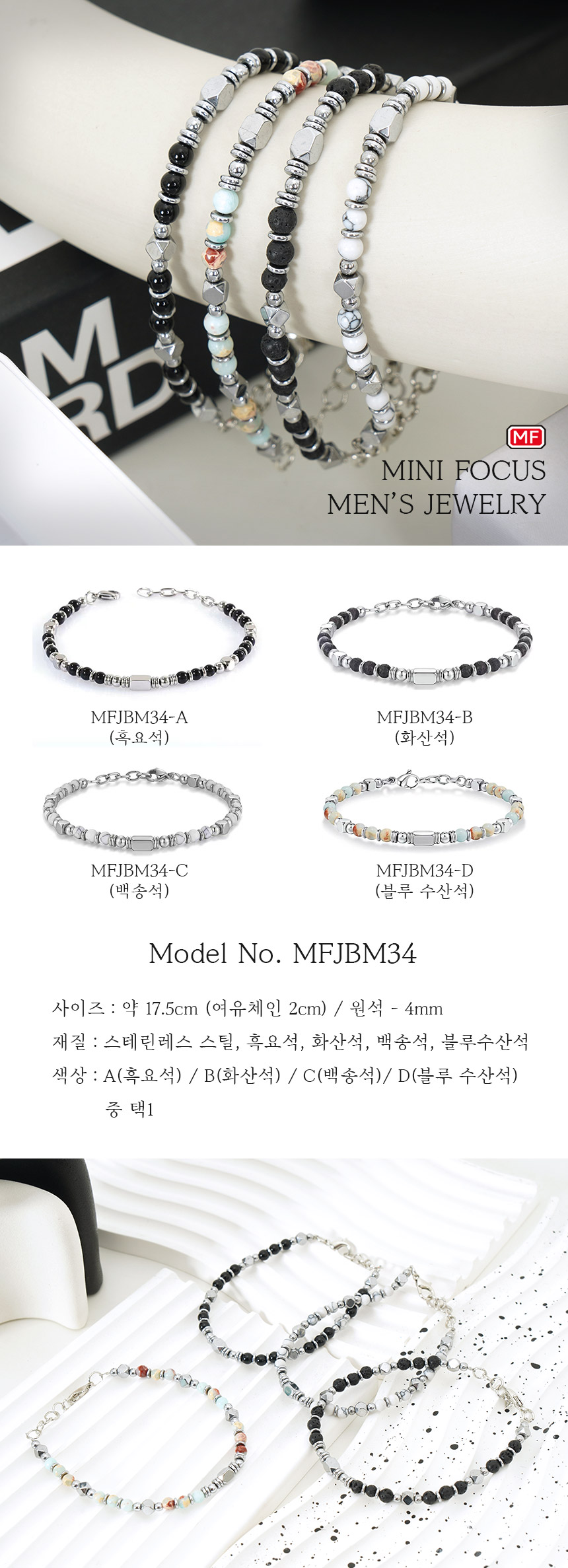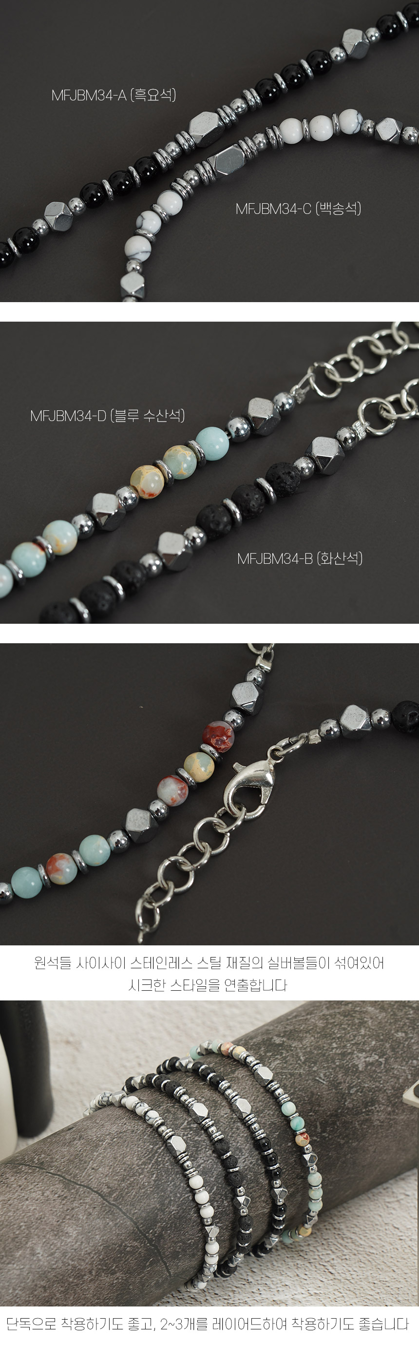 남성 패션 무광 원석 남자 팔찌 MFJBM04