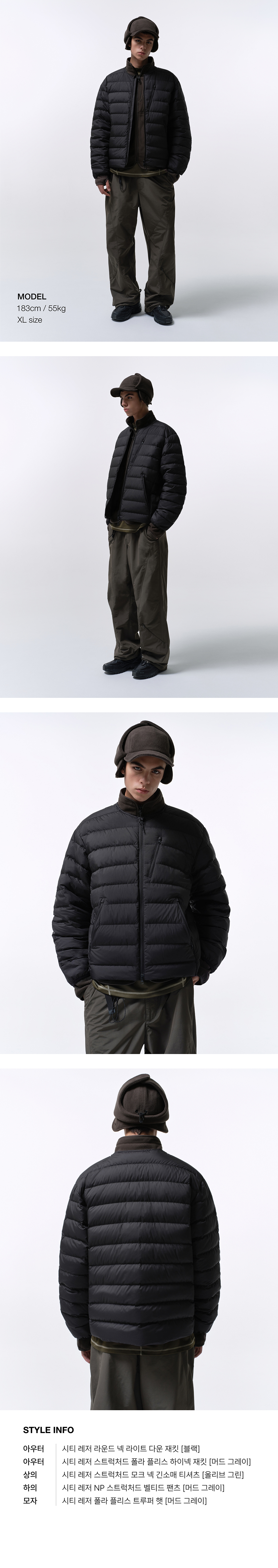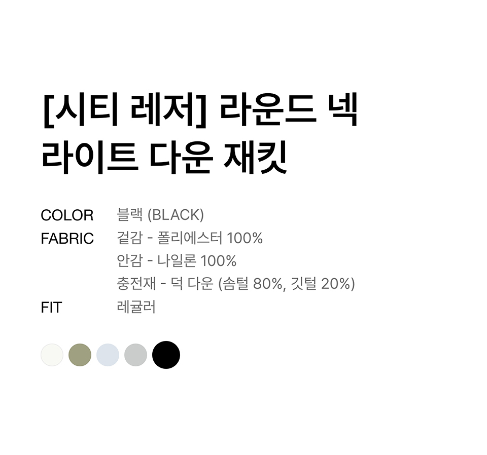 [시티 레저] 라운드 넥 라이트 다운 재킷 [블랙]