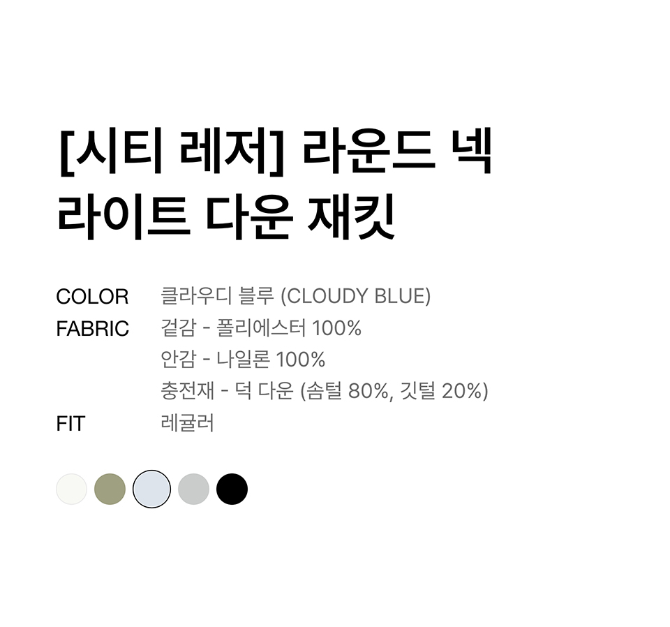 [시티 레저] 라운드 넥 라이트 다운 재킷 [클라우디 블루]