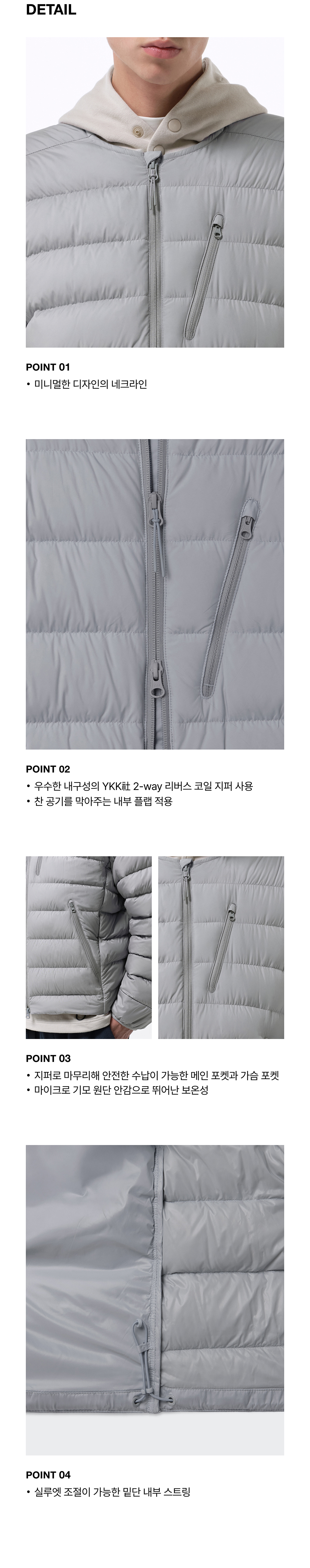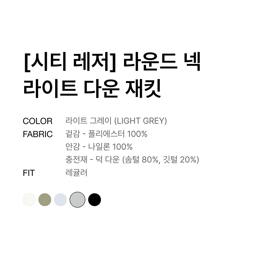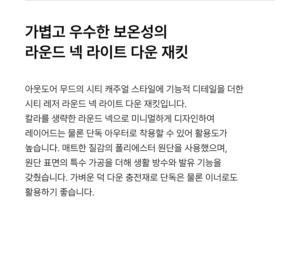[시티 레저] 라운드 넥 라이트 다운 재킷 [라이트 그레이]