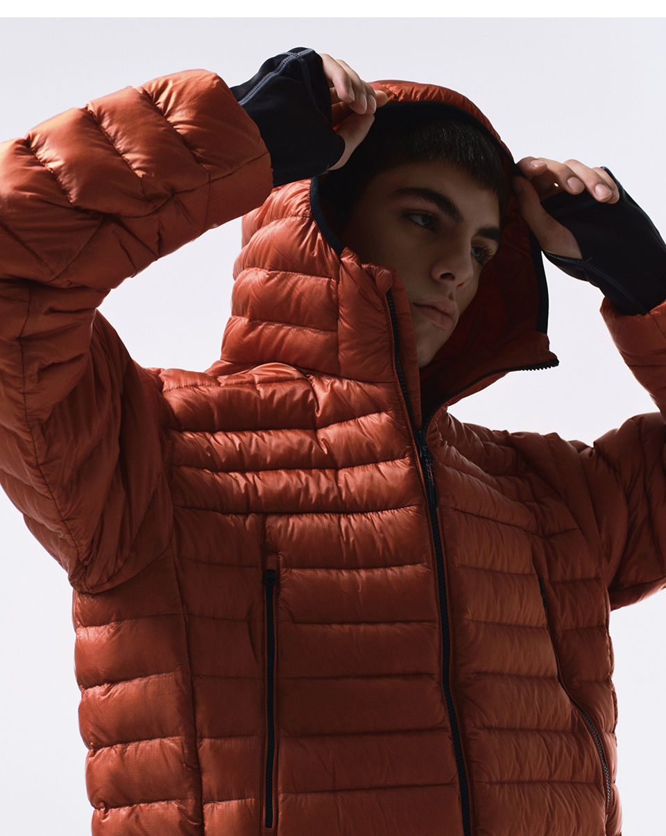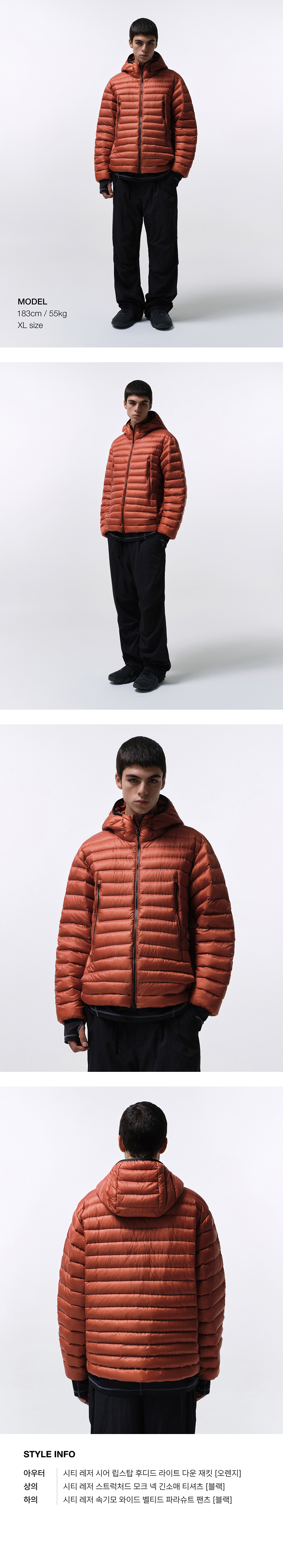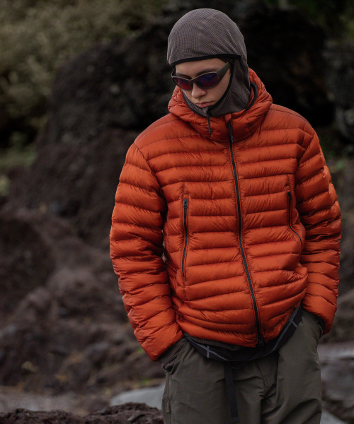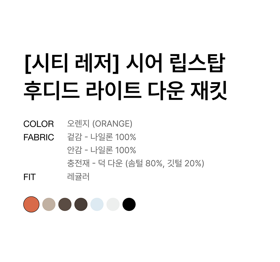 [시티 레저] 시어 립스탑 후디드 라이트 다운 재킷 [오렌지]