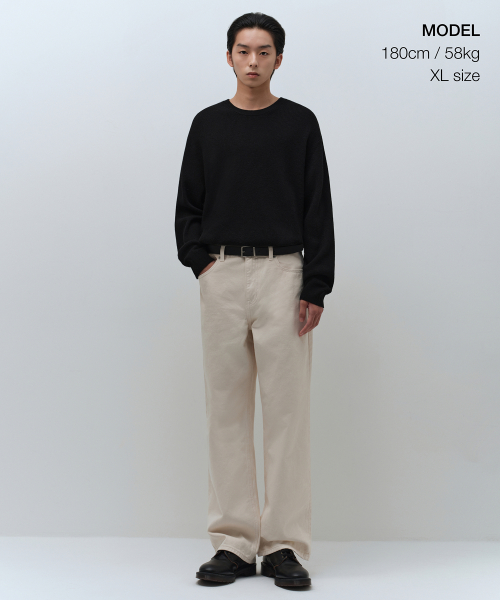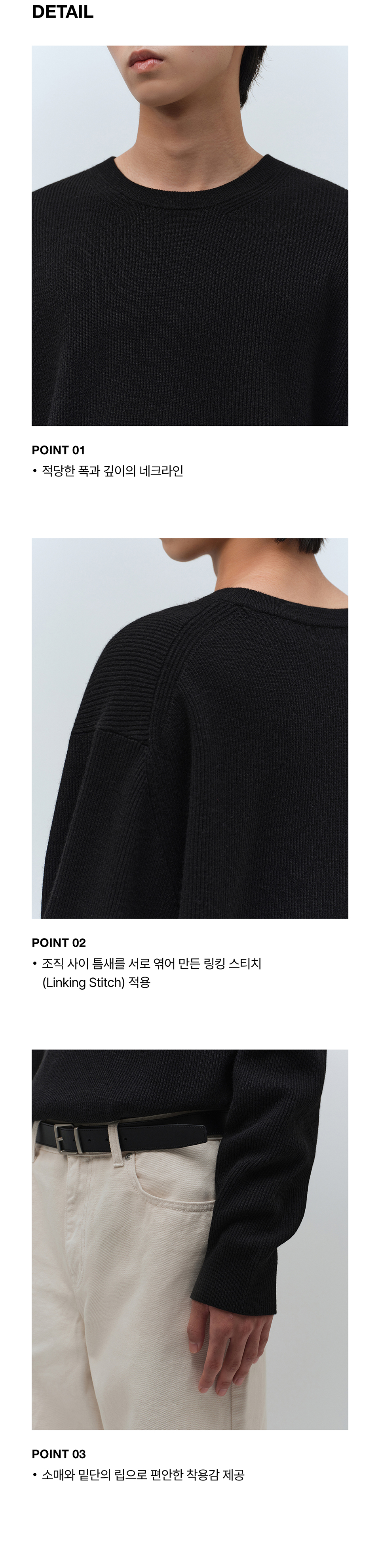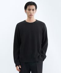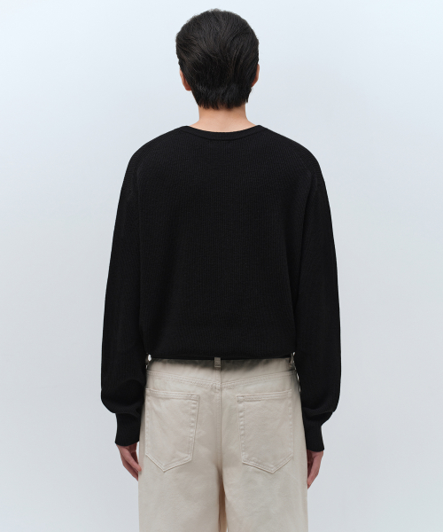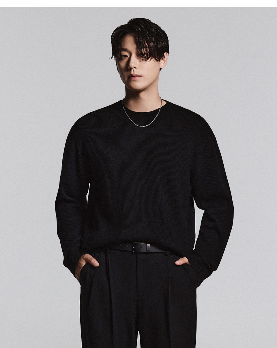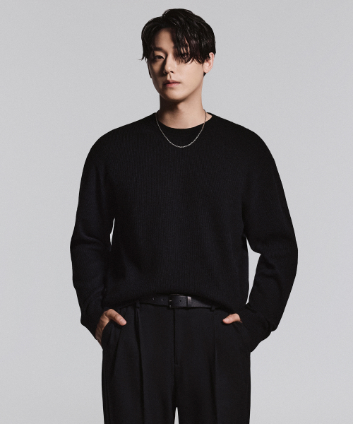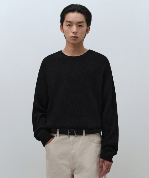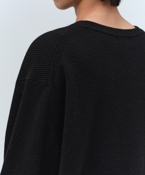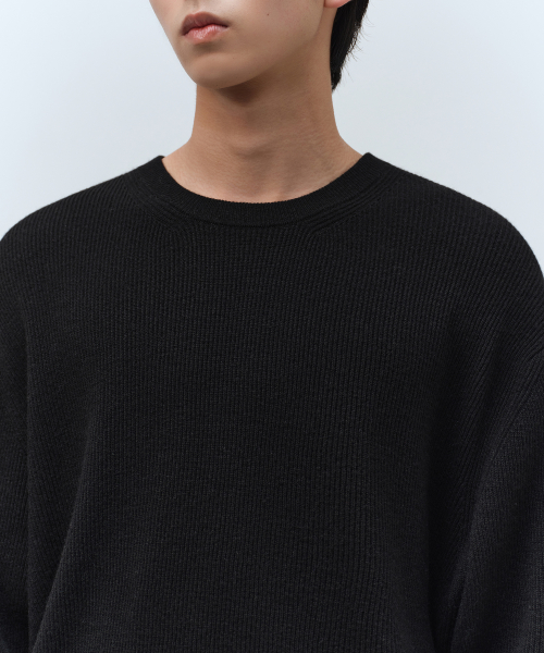 [빅토리아 울] 미니멀 리브드 크루 넥 니트 [블랙]