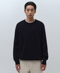 [스토커즈 컬래버] [빅토리아 울] 미니멀 리브드 크루 넥 니트 [네이비]
