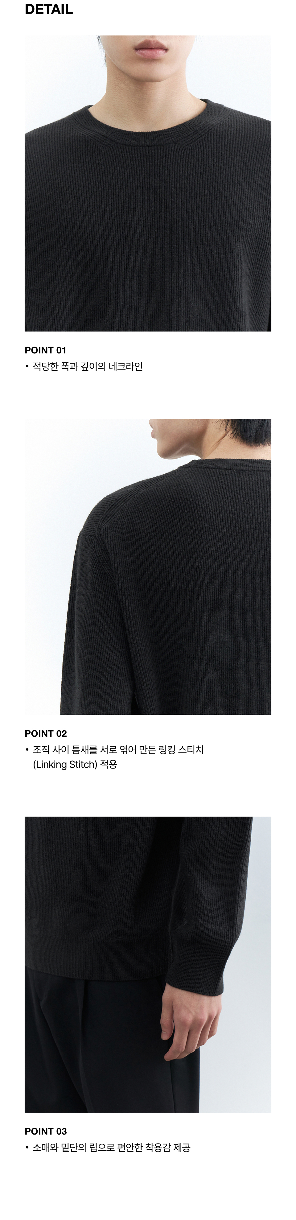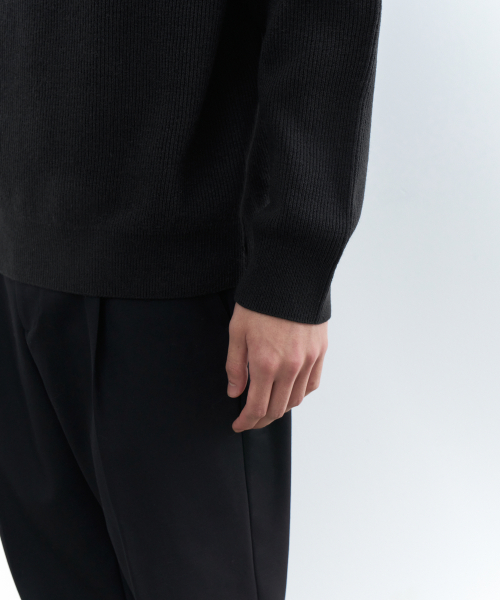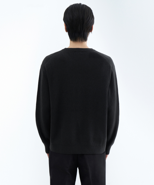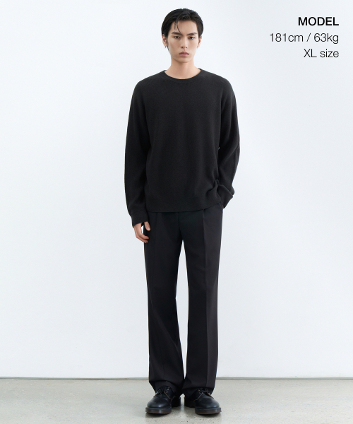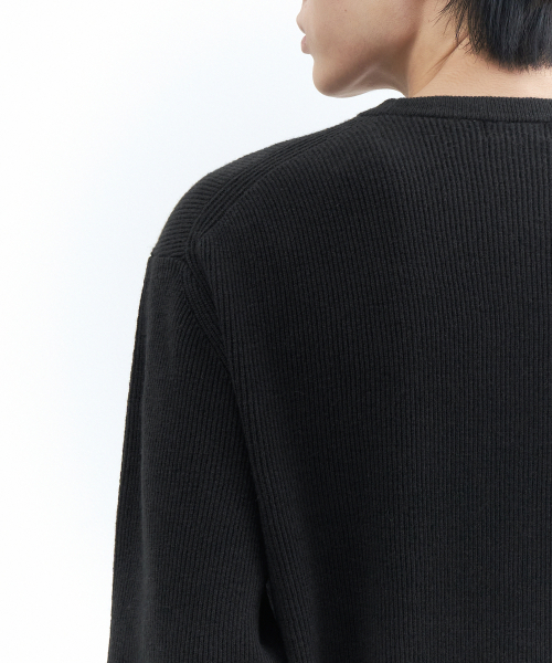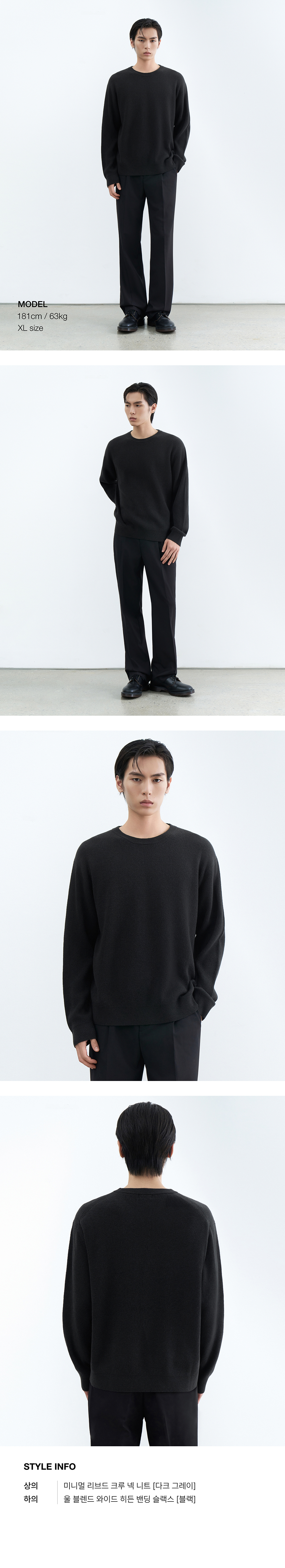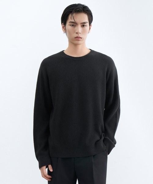 [이도현 PICK] [빅토리아 울] 미니멀 리브드 크루 넥 니트 [블랙]