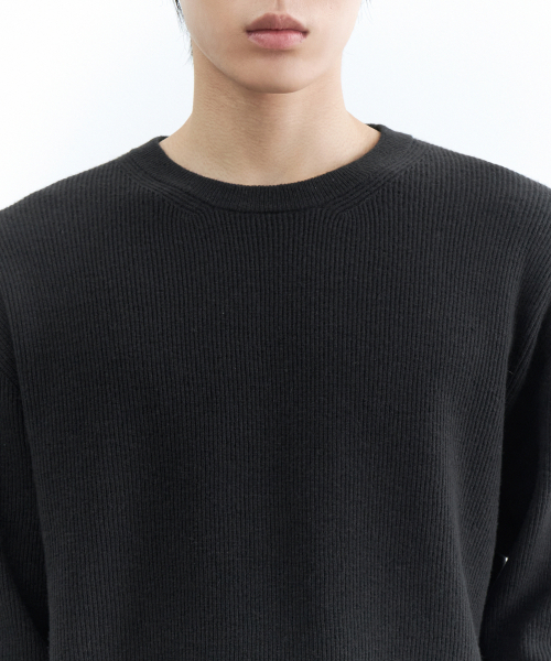 [빅토리아 울] 미니멀 리브드 크루 넥 니트 [다크 그레이]