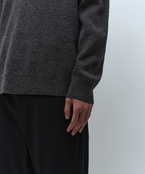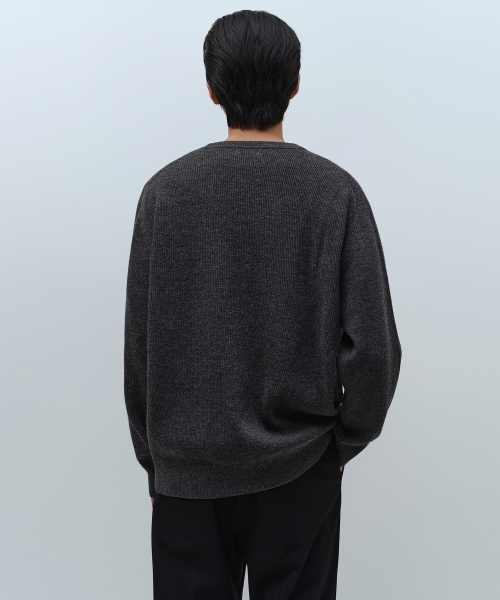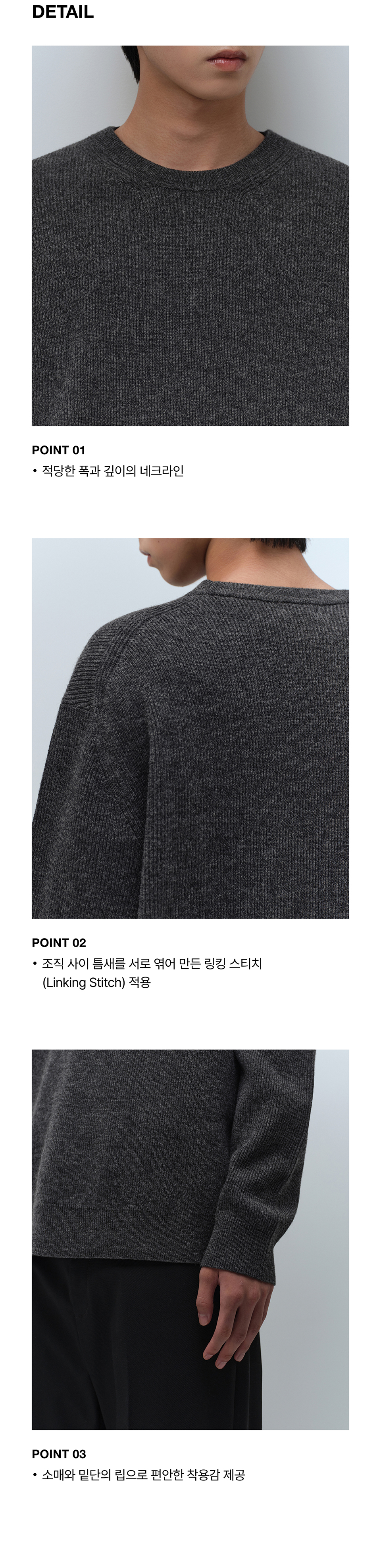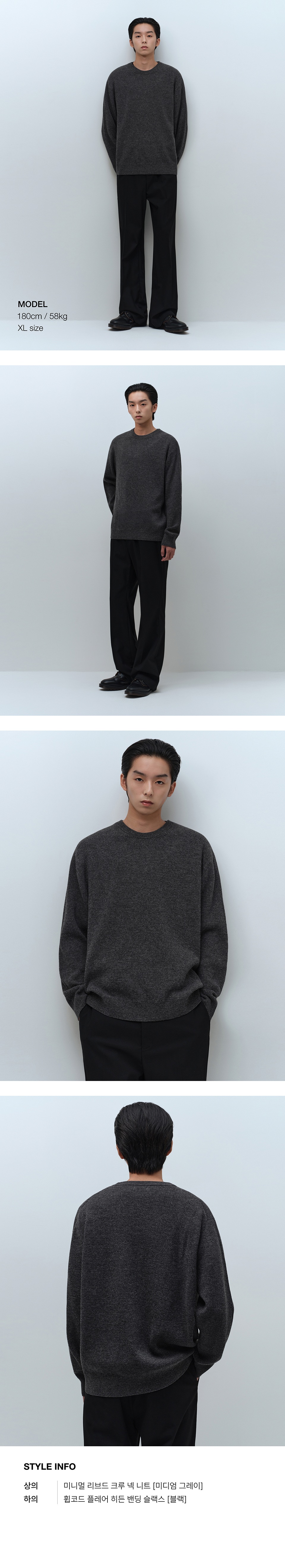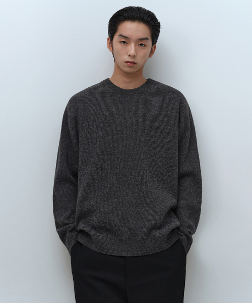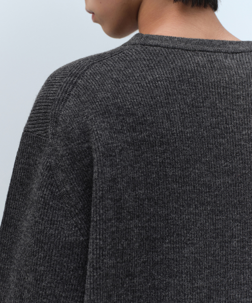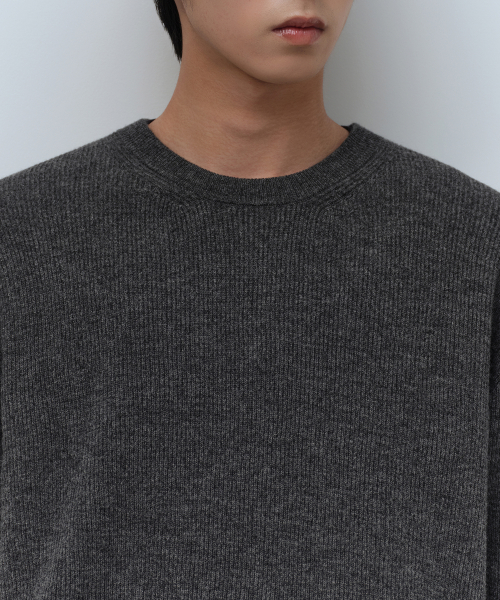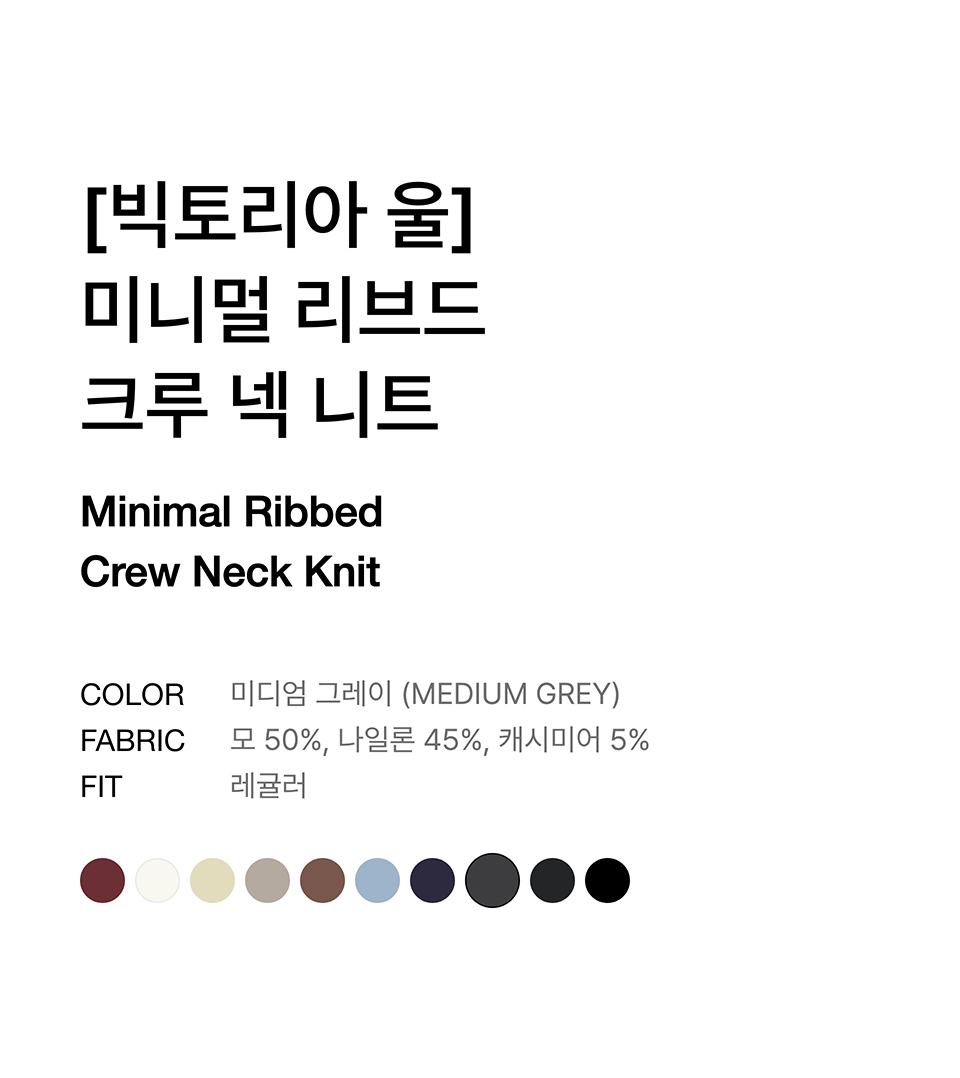 [빅토리아 울] 미니멀 리브드 크루 넥 니트 [미디엄 그레이]