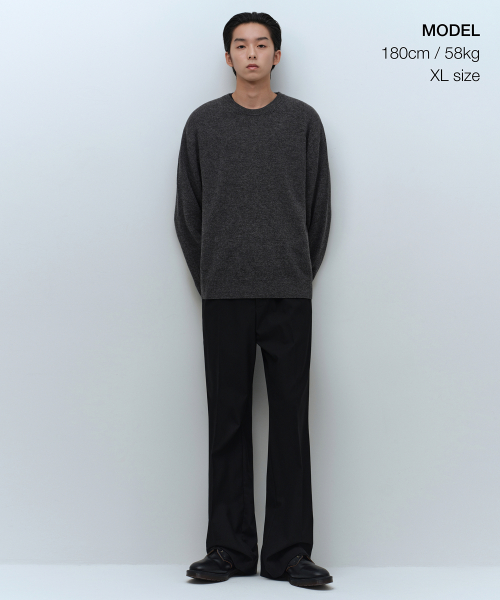 [스토커즈 컬래버] [빅토리아 울] 미니멀 리브드 크루 넥 니트 [다크 그레이]