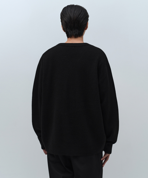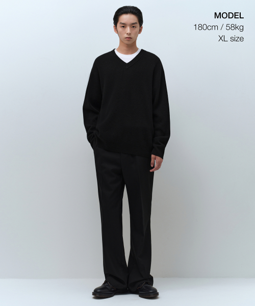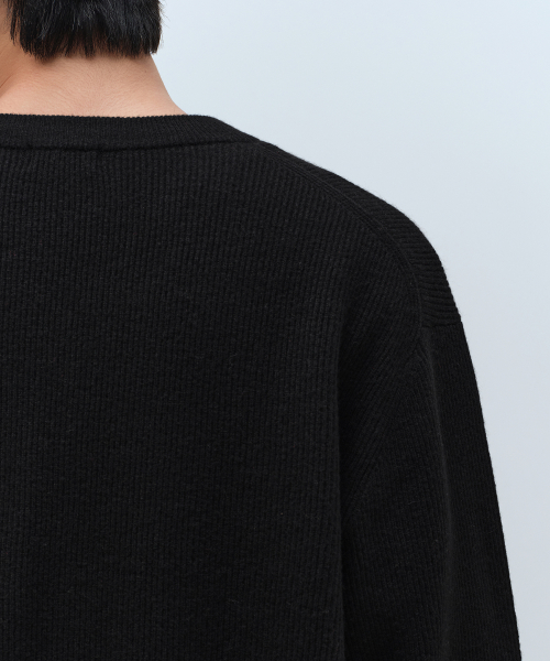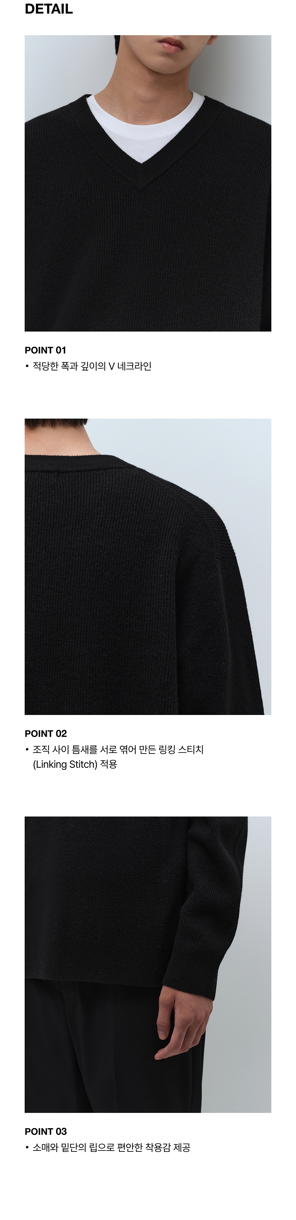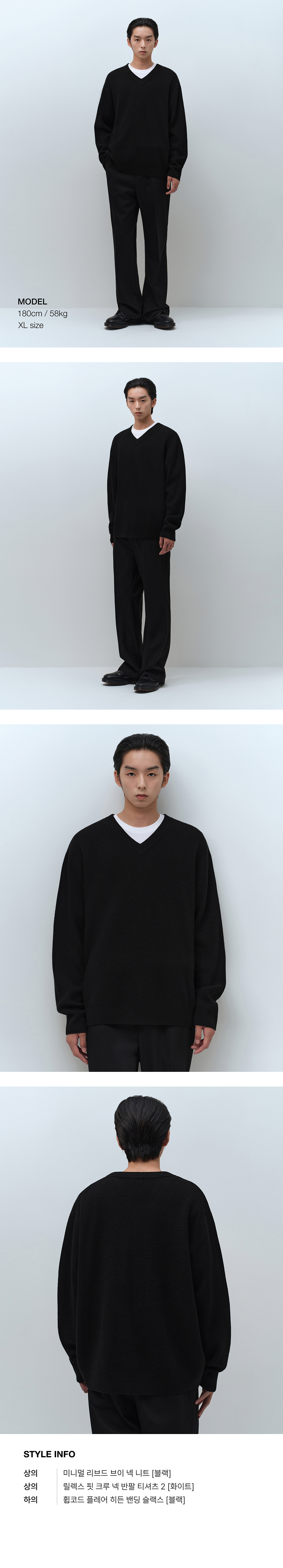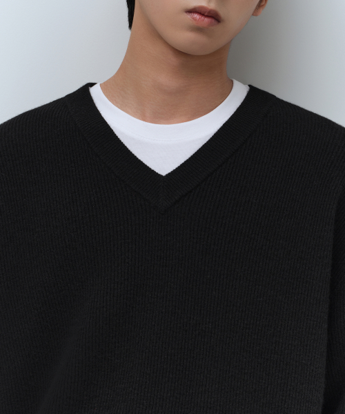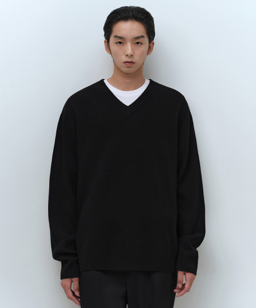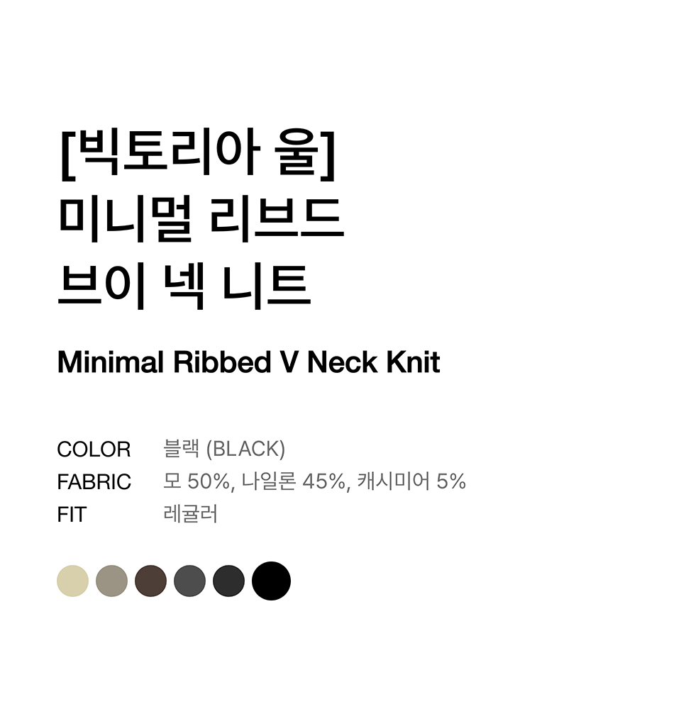 [빅토리아 울] 미니멀 리브드 브이 넥 니트 [블랙]
