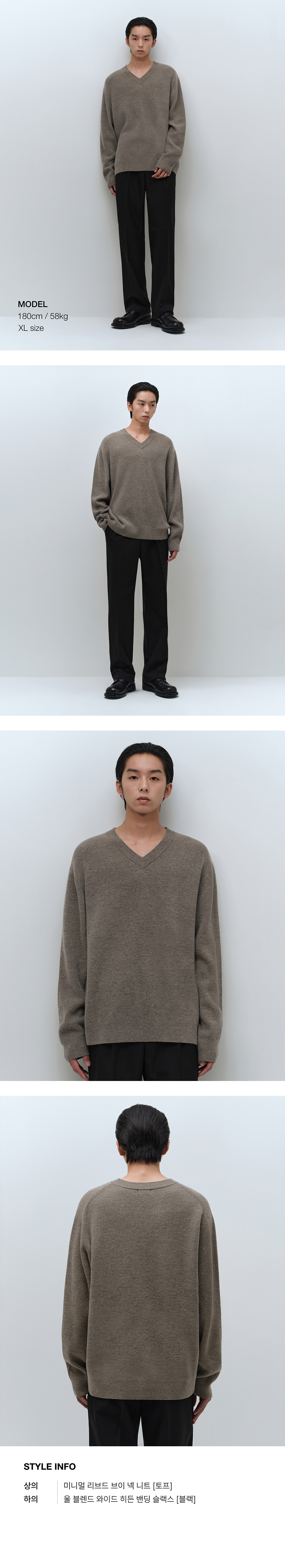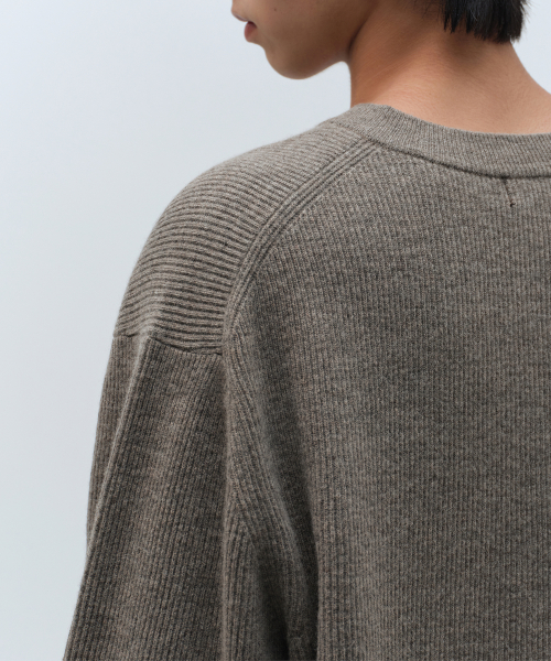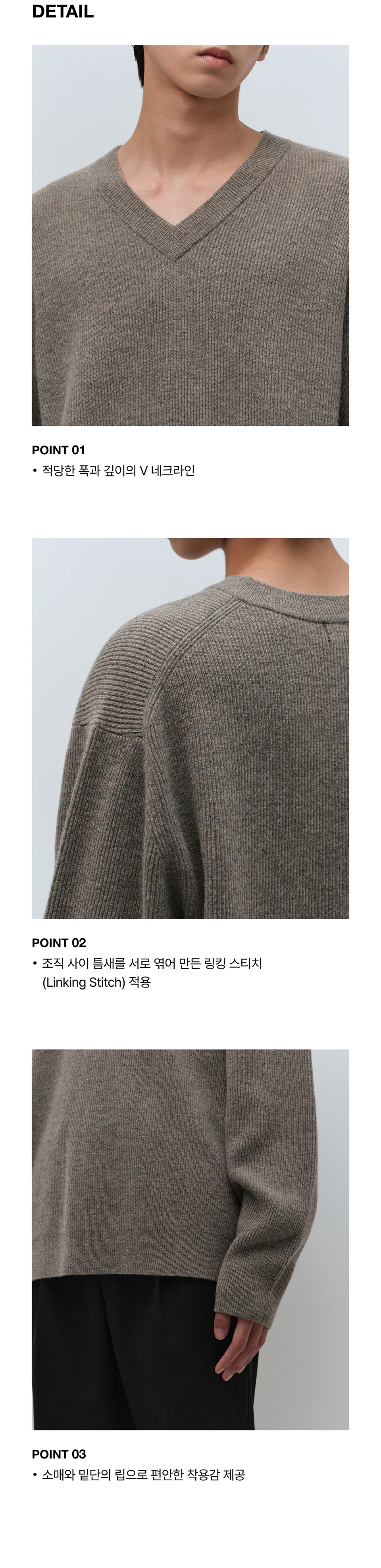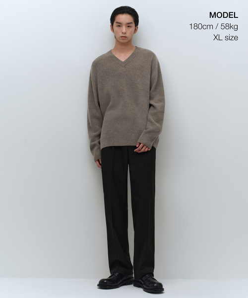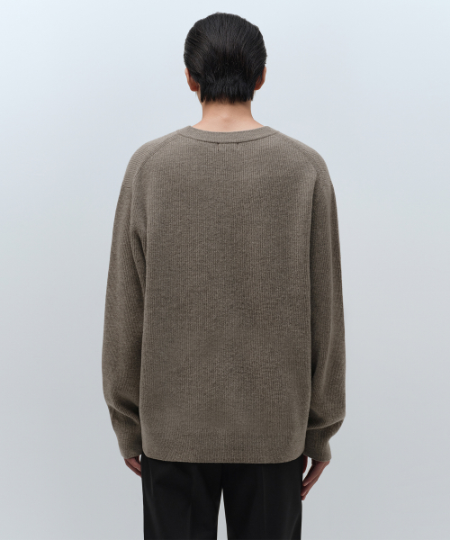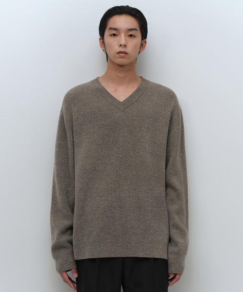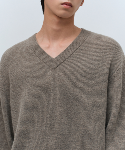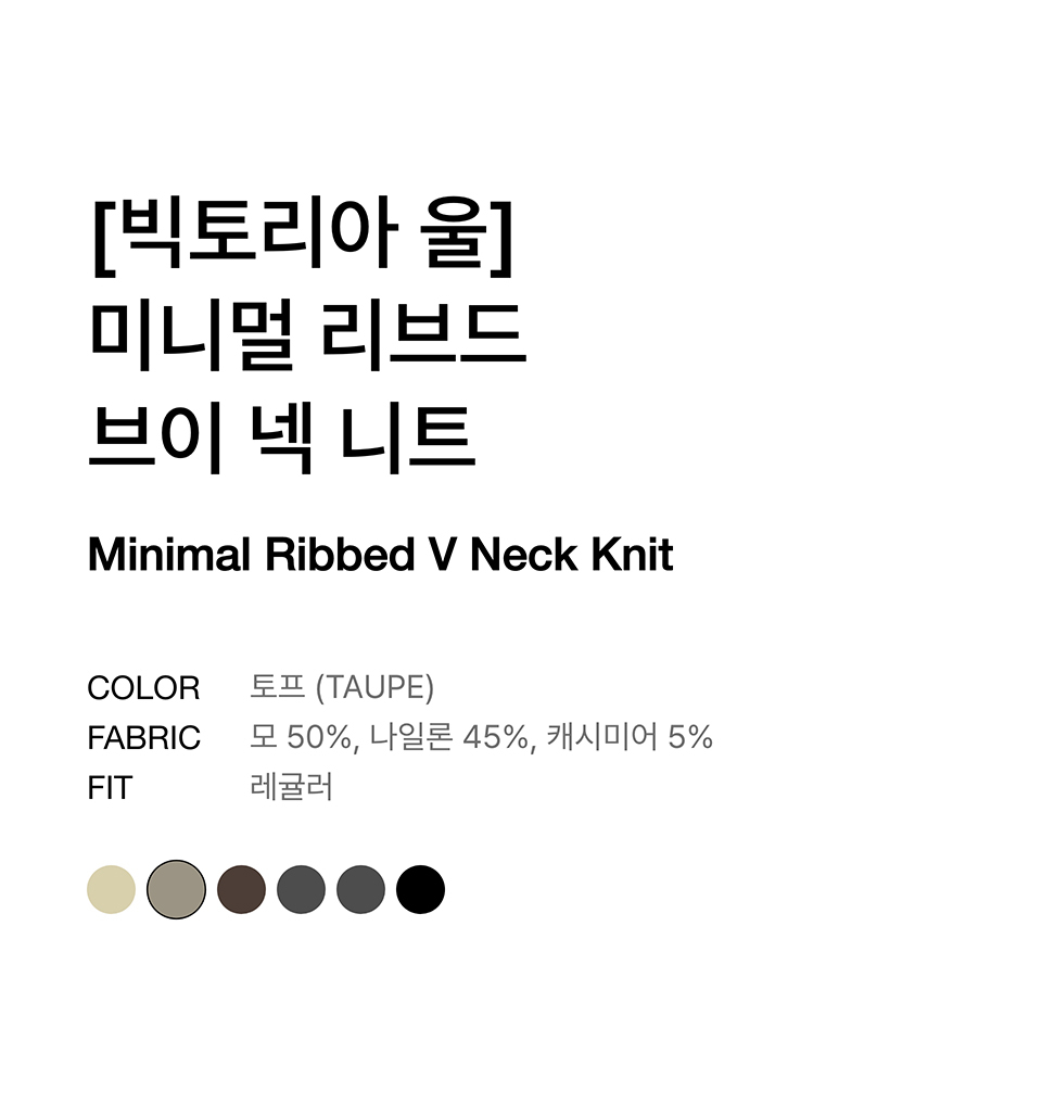 [빅토리아 울] 미니멀 리브드 브이 넥 니트 [토프]
