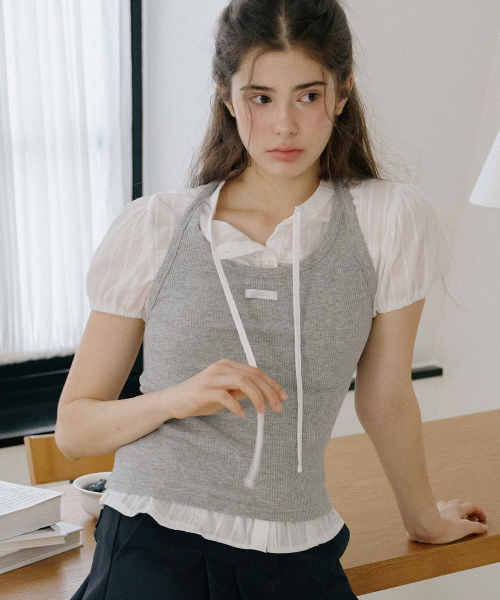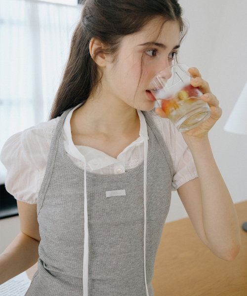 레터즈 라벨 홀터넥 탑 ( 그레이 )