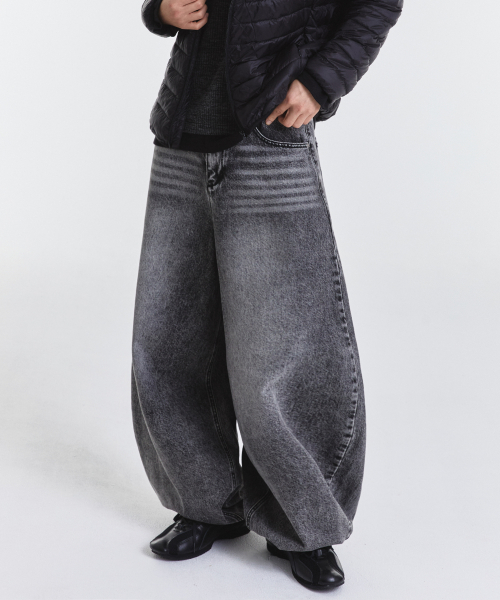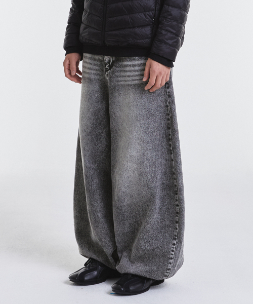 BALLOON FIT DENIM PANTS (ICE GREY)