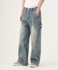 빈티지 워싱 카펜터 벌룬핏 데님 팬츠 유니섹스 (블루)