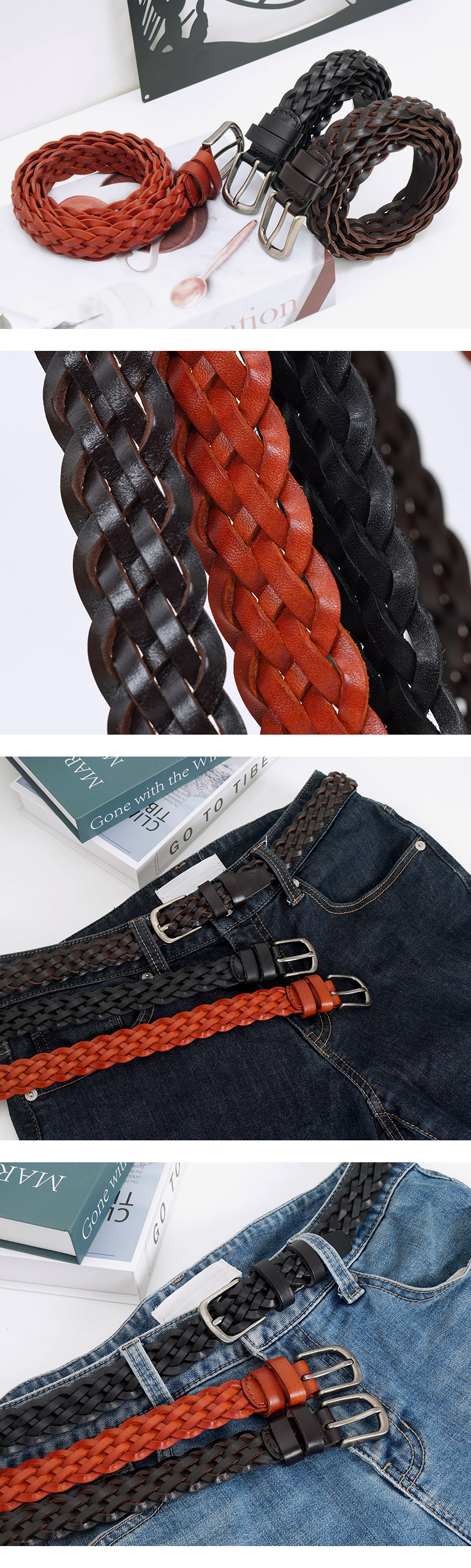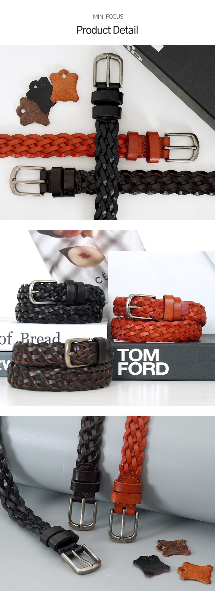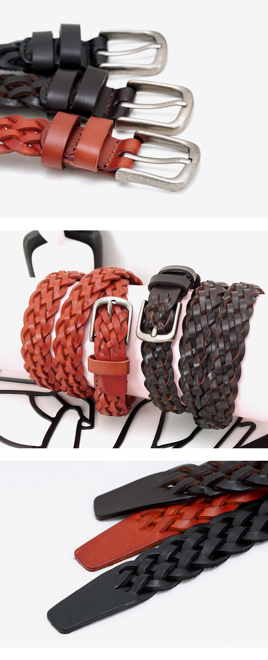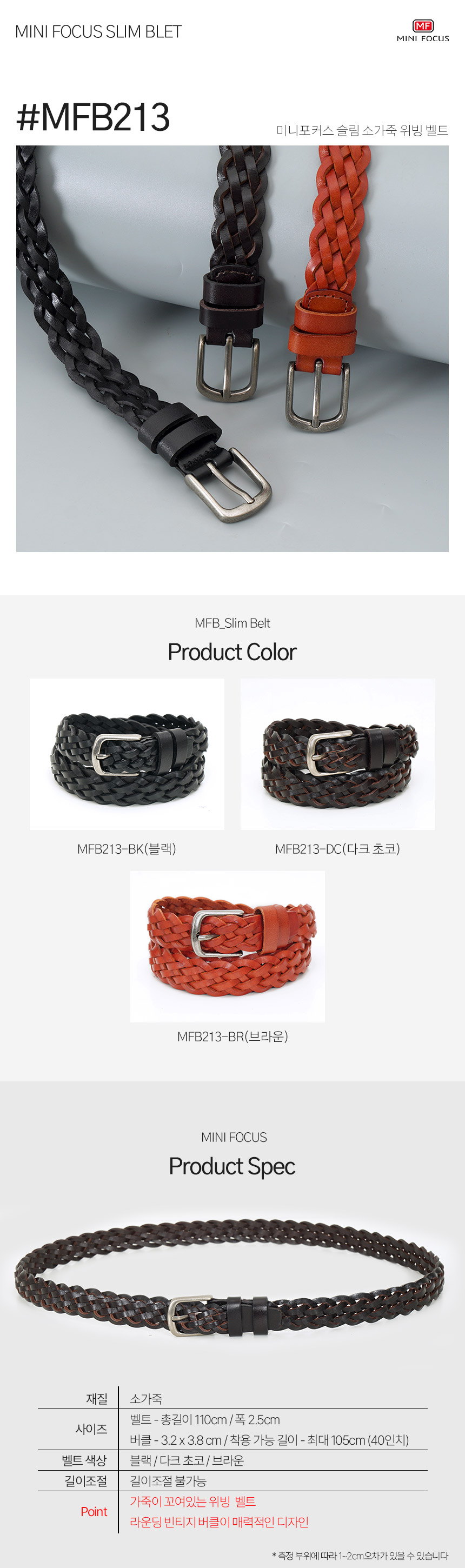 미니포커스 소가죽 남성 수동 슬림 위빙 벨트 MFB213