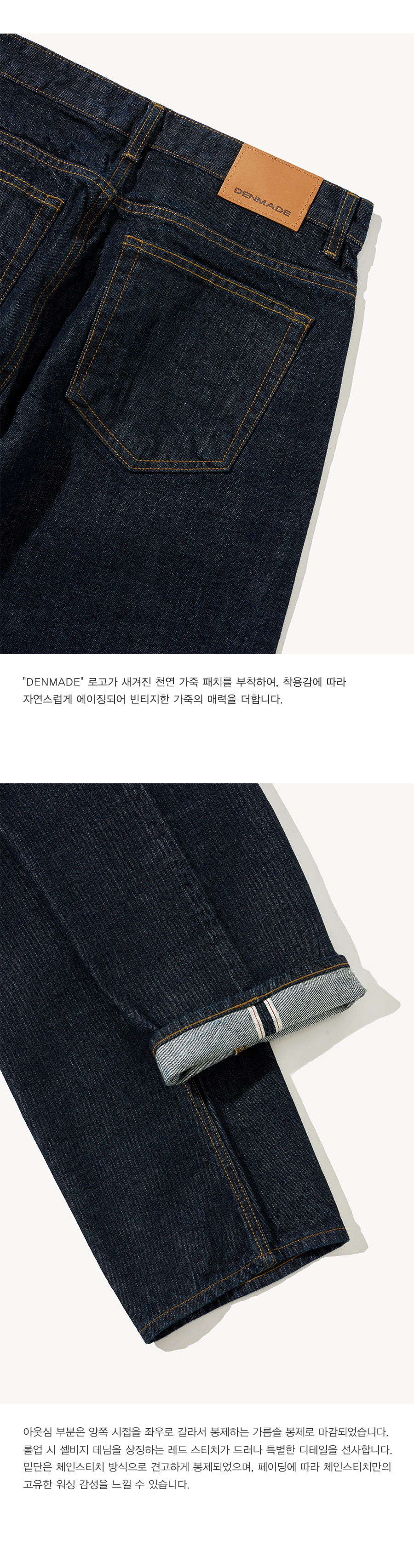 덴메이드(DENMADE)는 간결함 속에 깊은 이야기를 담은 데님을 선사합니다. 엄선한 원단과 정교한 제작 과정을 통해 데님 본연의 질감과 매력을 극대화하고 장인의 섬세한 손길과 클래식한 디자인으로 세월이 흘러도 변치 않는 견고함과 스타일을 완성하는 브랜드입니다.