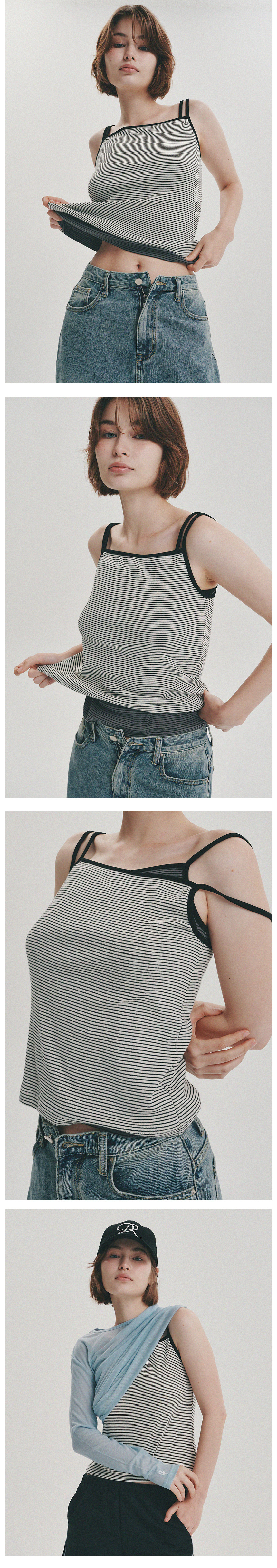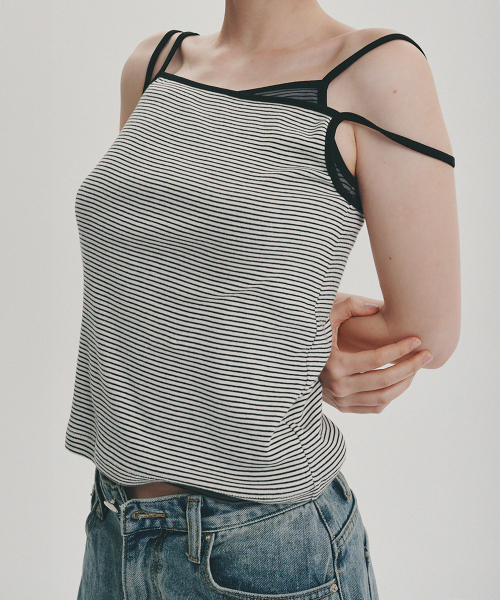 라벨 디테일 스트라이프 슬리브리스 (차콜)