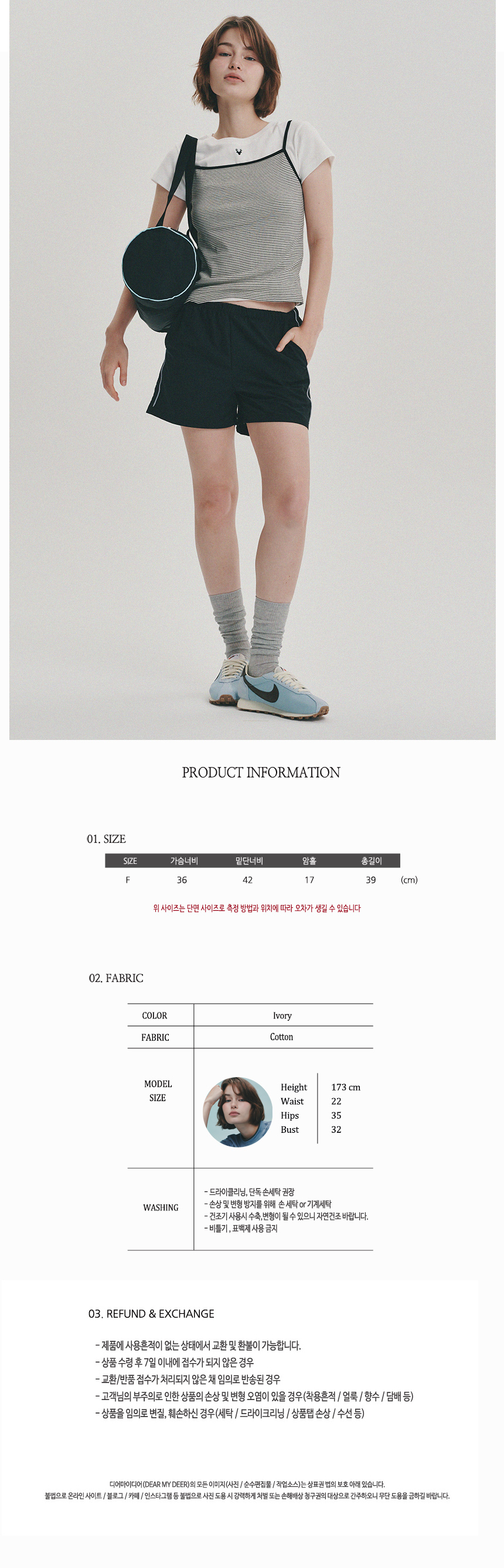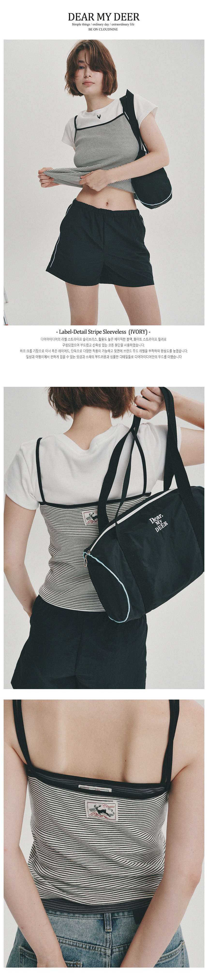 라벨 디테일 스트라이프 슬리브리스 (아이보리)