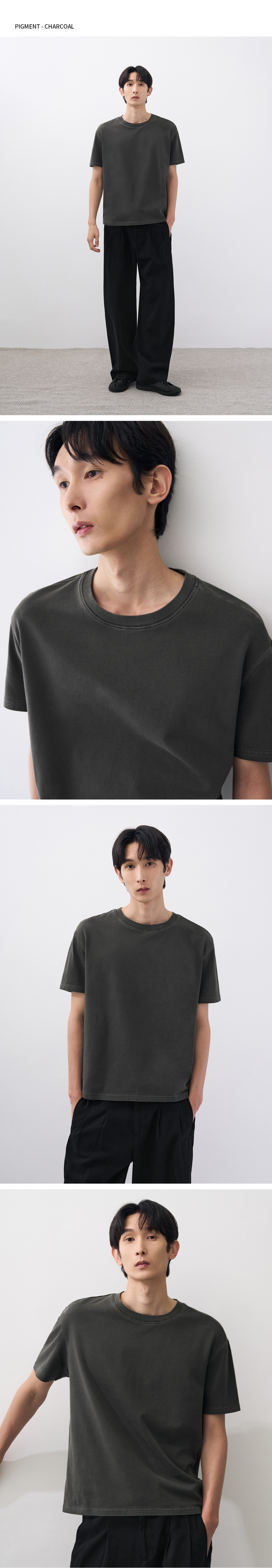 헤일 코튼 크롭 하프 피그먼트 티셔츠 [CHARCOAL]