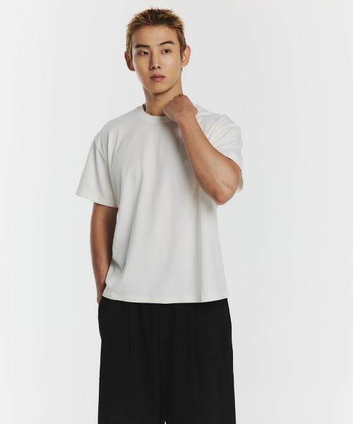 코튼메쉬 루즈핏 크롭 숏 슬리브 (4color)