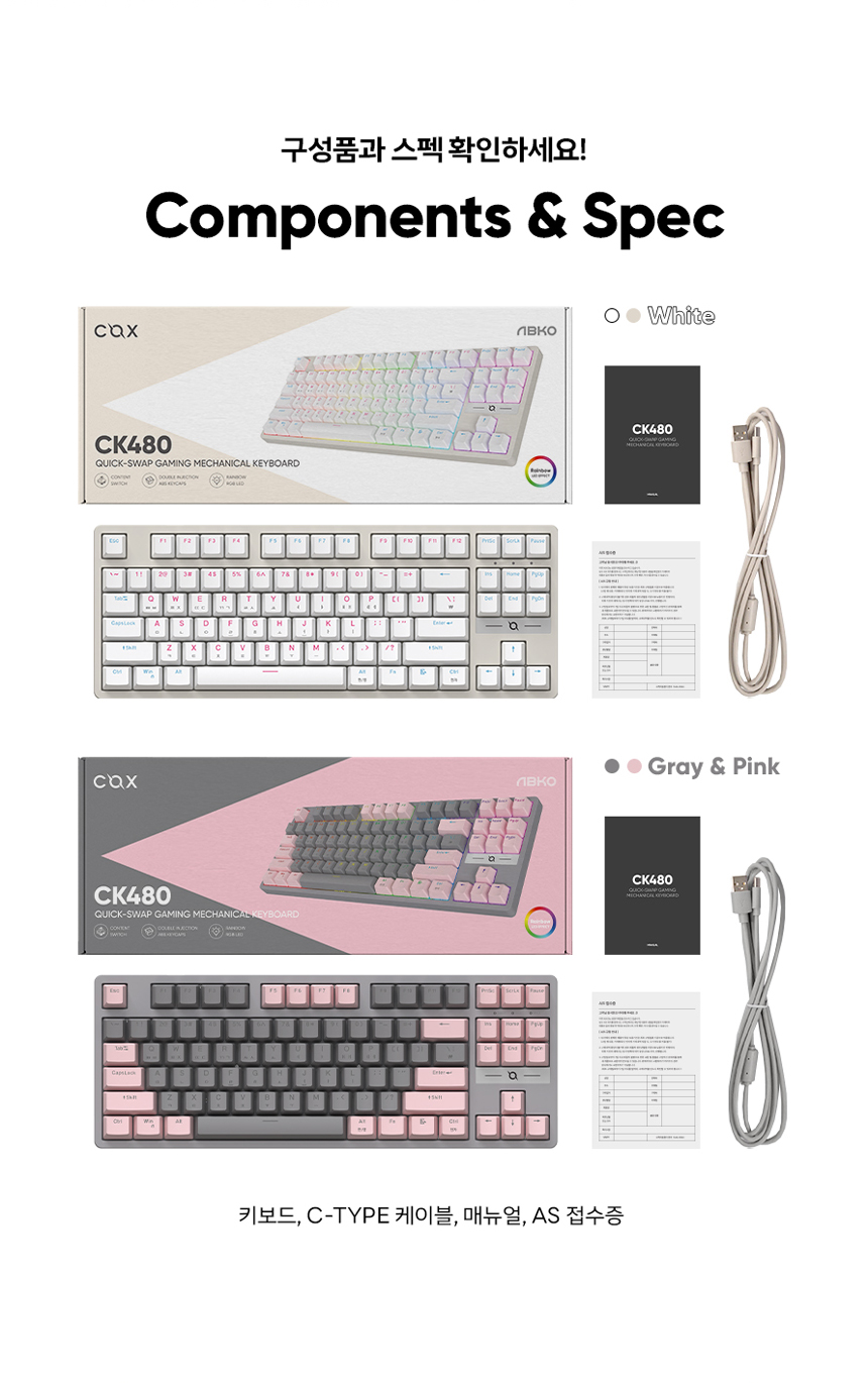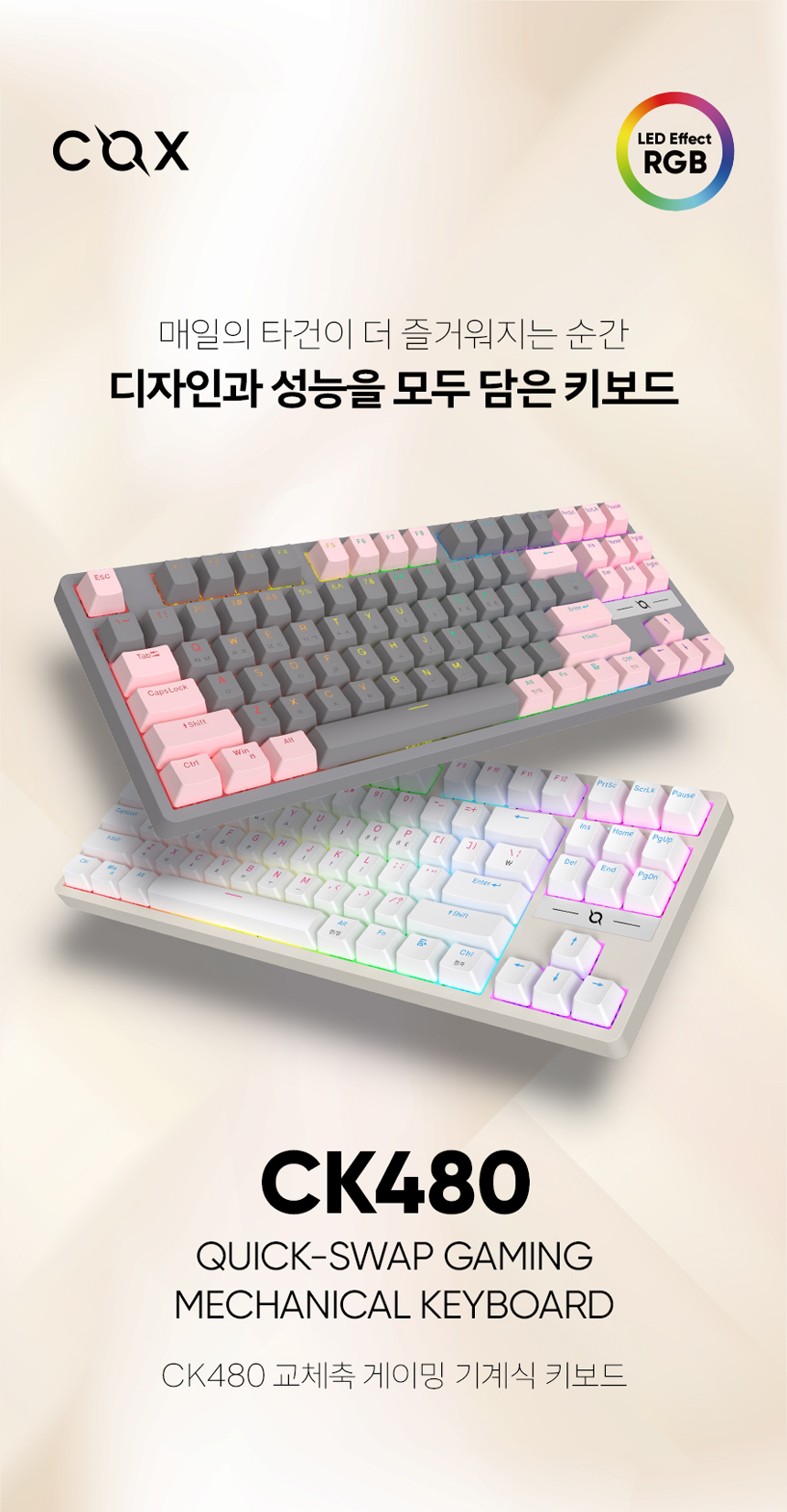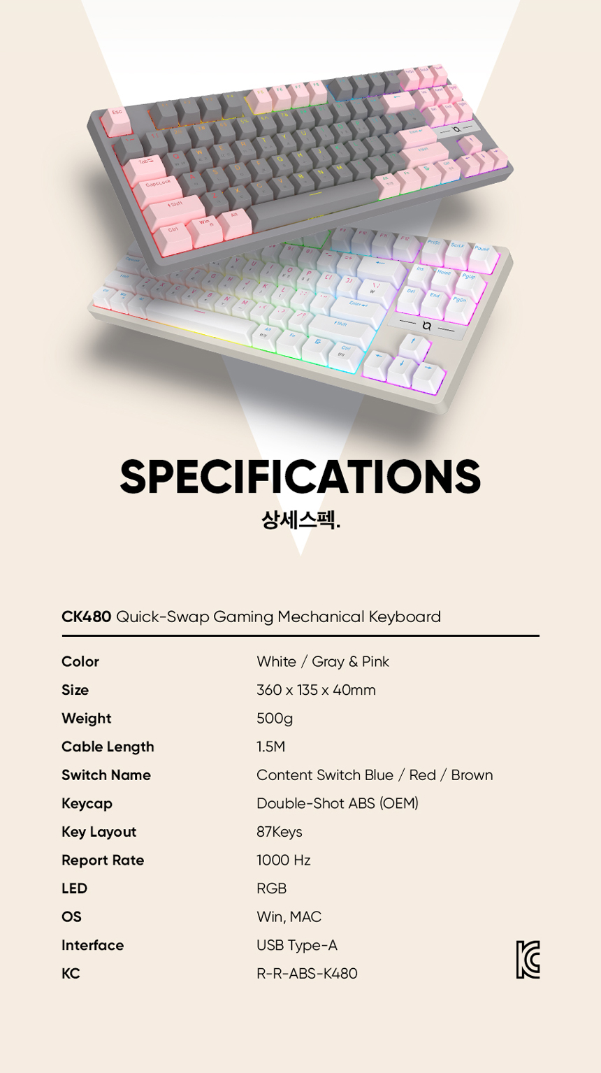CK480 교체축 게이밍 기계식 키보드 그레이핑크,화이트 (청축,적축,갈축)