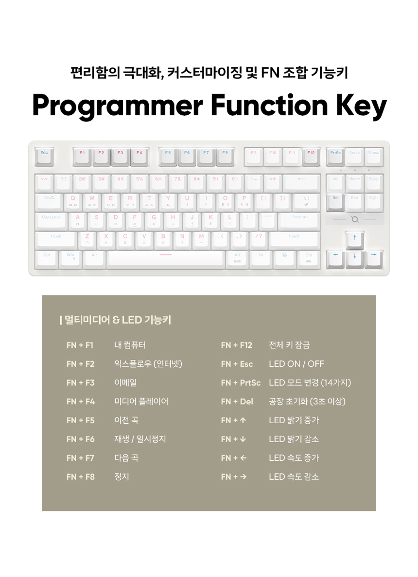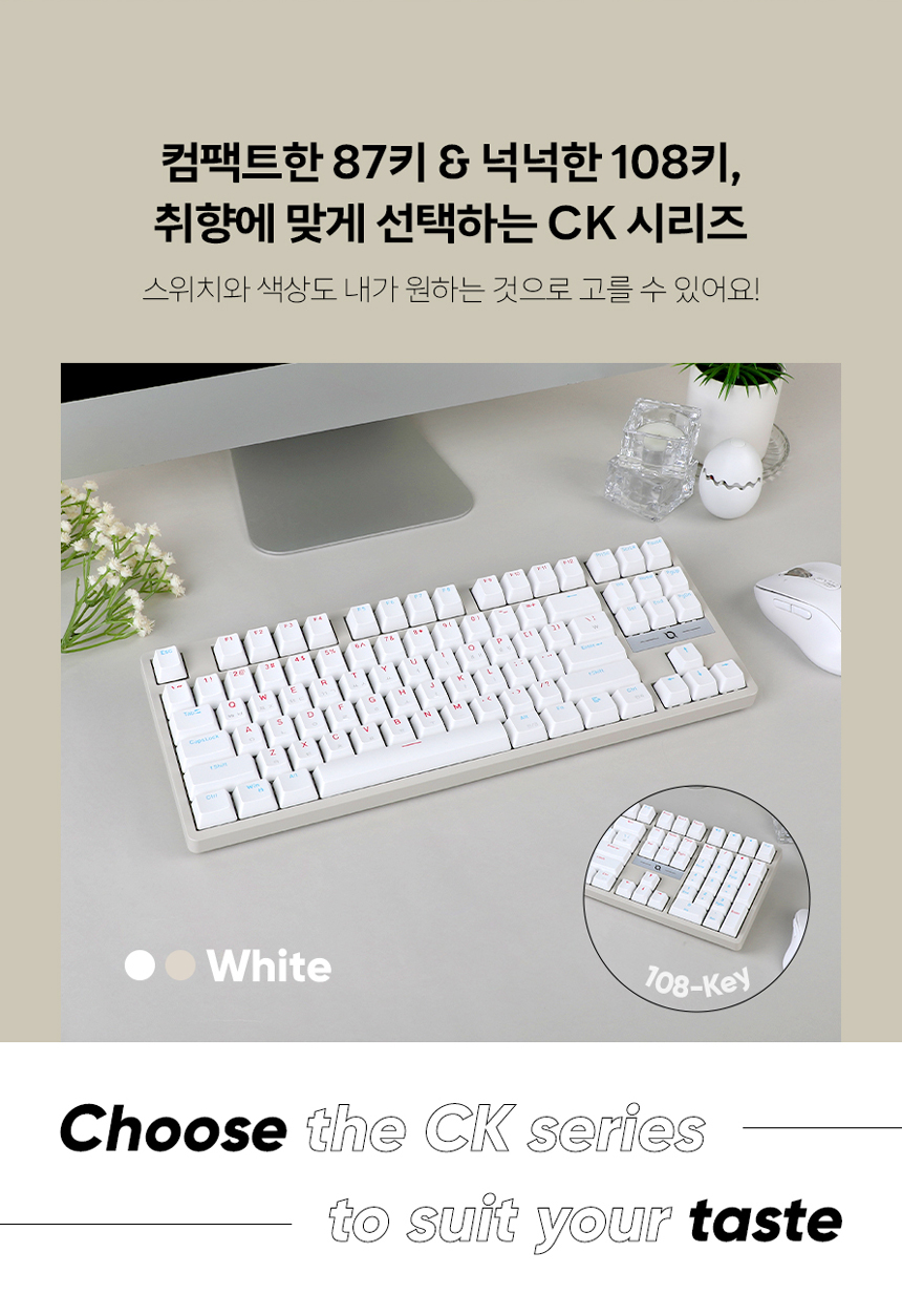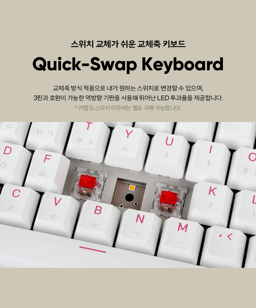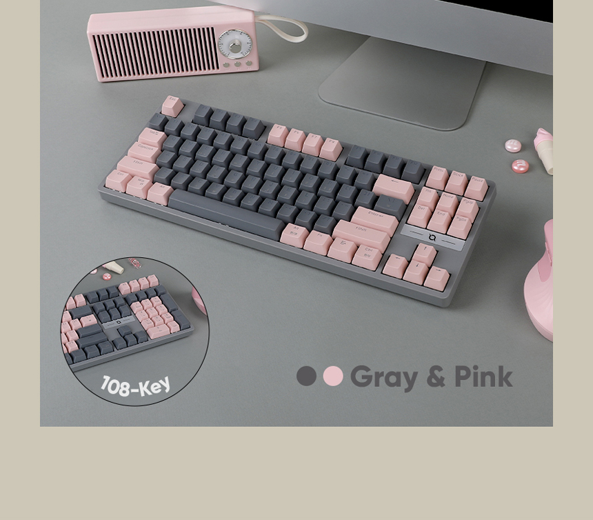 CK480 교체축 게이밍 기계식 키보드 그레이핑크,화이트 (청축,적축,갈축)
