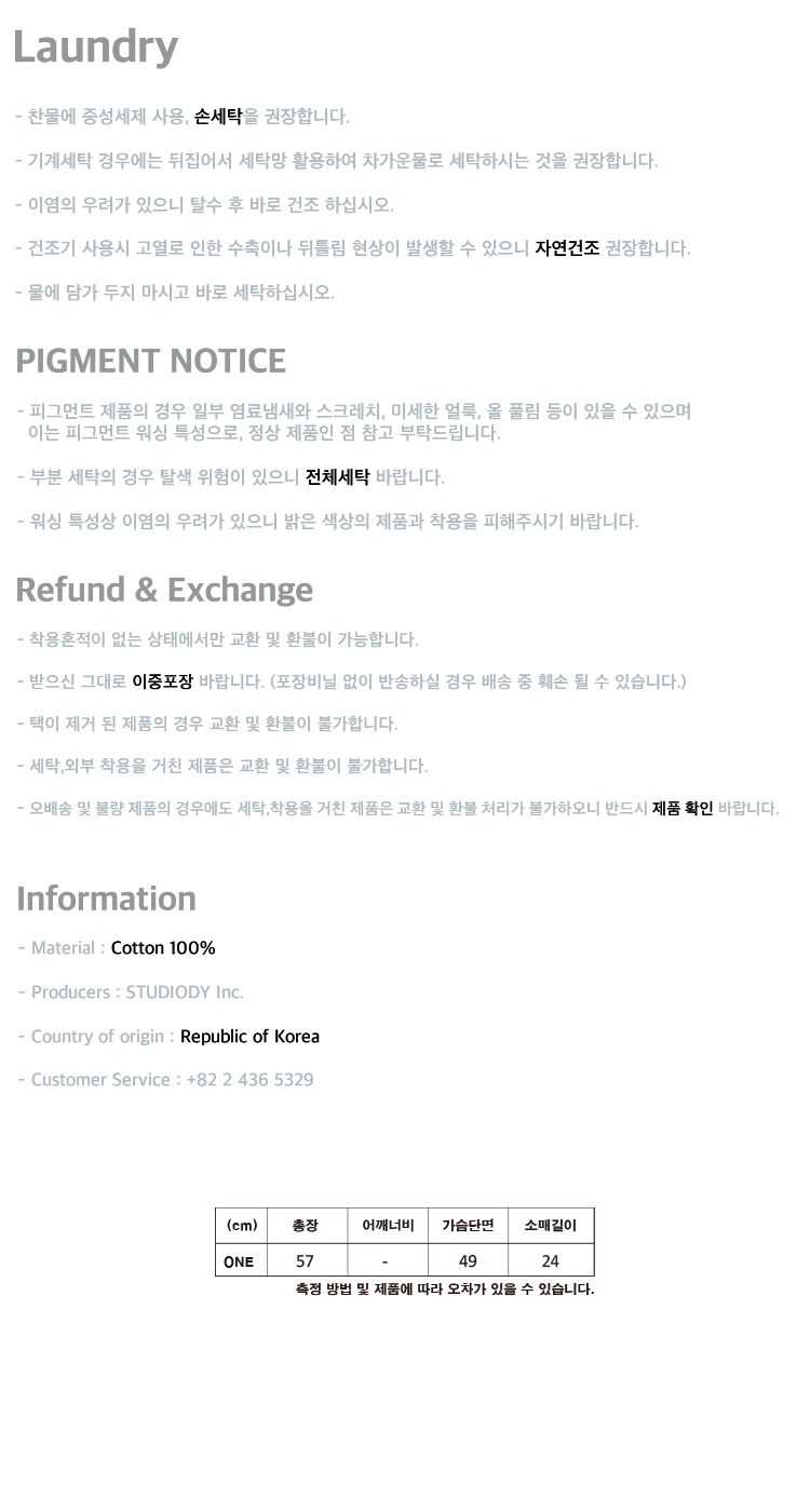 옷의 형태를 '한결같이' 유지하기 위하여 텐타, 덤블 가공으로 원단 수축율과 뒤틀림을 최소화하였습니다.