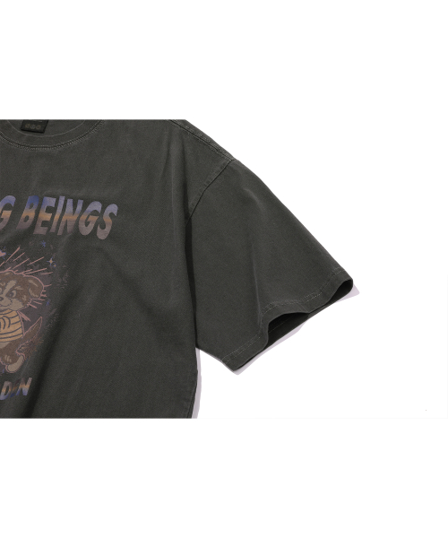 아트웍이 피그먼트 워싱되며 가공 처리하여 유니크한 무드를 연출했습니다.