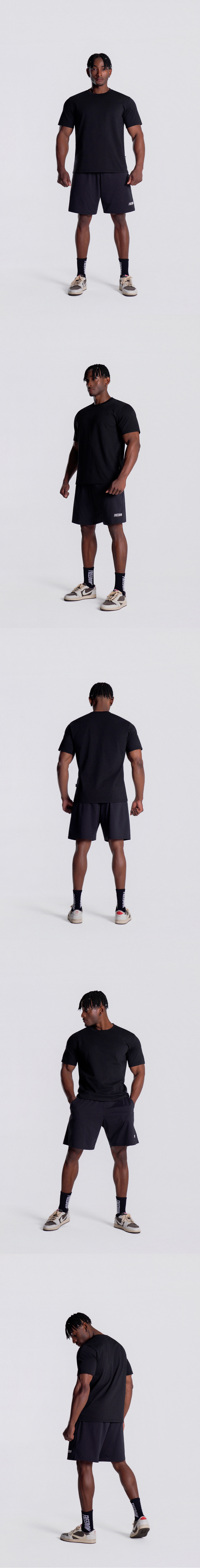 오버핏 와이드 스트링 조거 팬츠 - 블랙