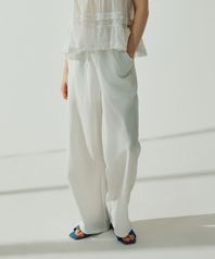 슬로쉬 린넨 밴딩 와이드 팬츠 - White