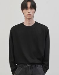 레스티드 세미 오버핏 라운드넥 니트 [블랙]