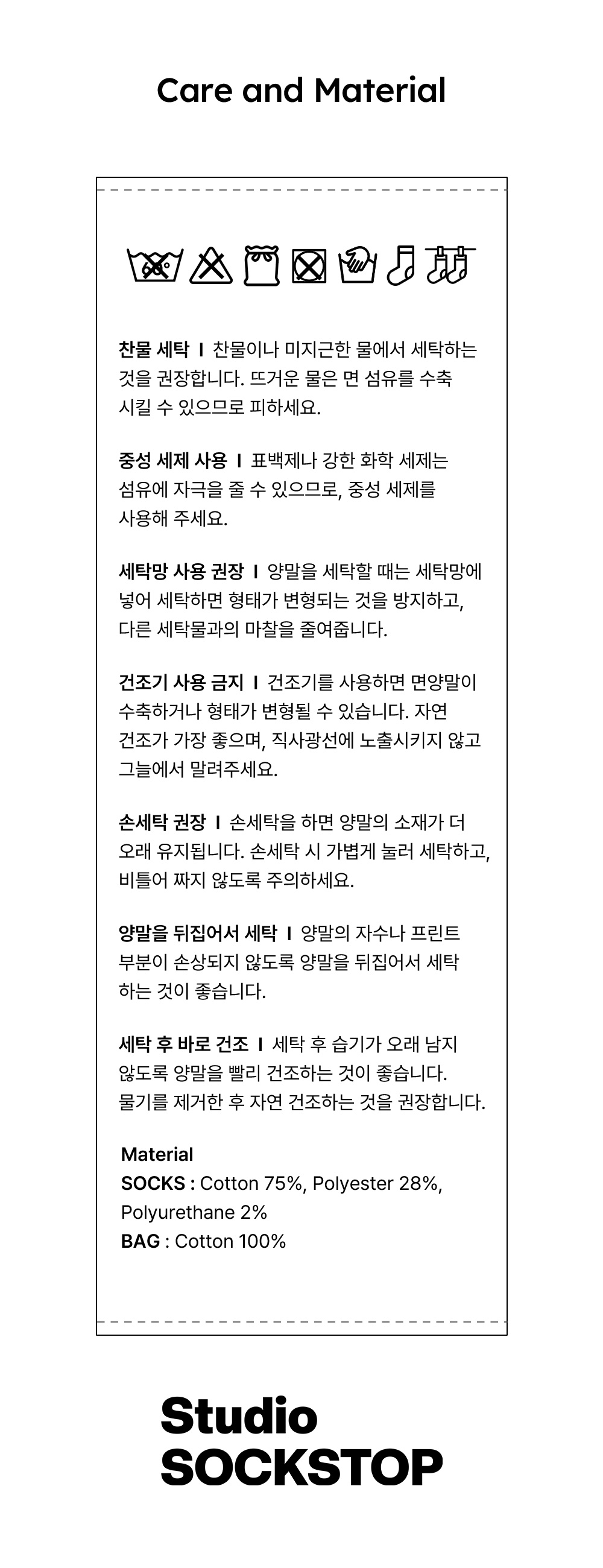 스튜디오 싹스탑(STUDIO SOCKSTOP)은 30년 이상의 역사를 가진 양말 브랜드로, 국내 생산만을 고집합니다.