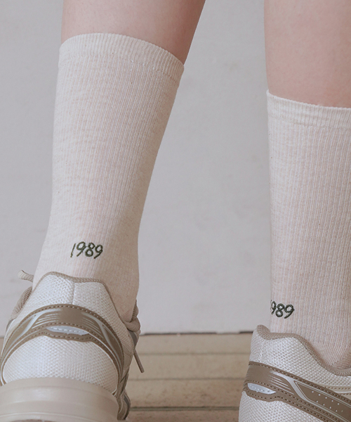 OOSS 마늘곰 페이스 올오버 패턴 양말 오트밀